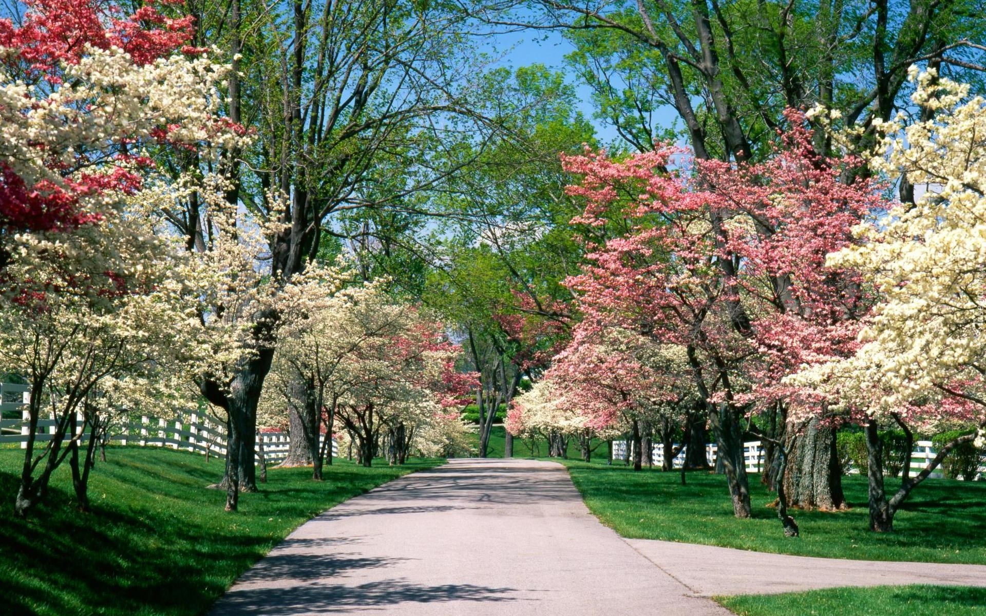 Edytor tapety: Park, Wiosna, Biało, Różowe, Drzewa