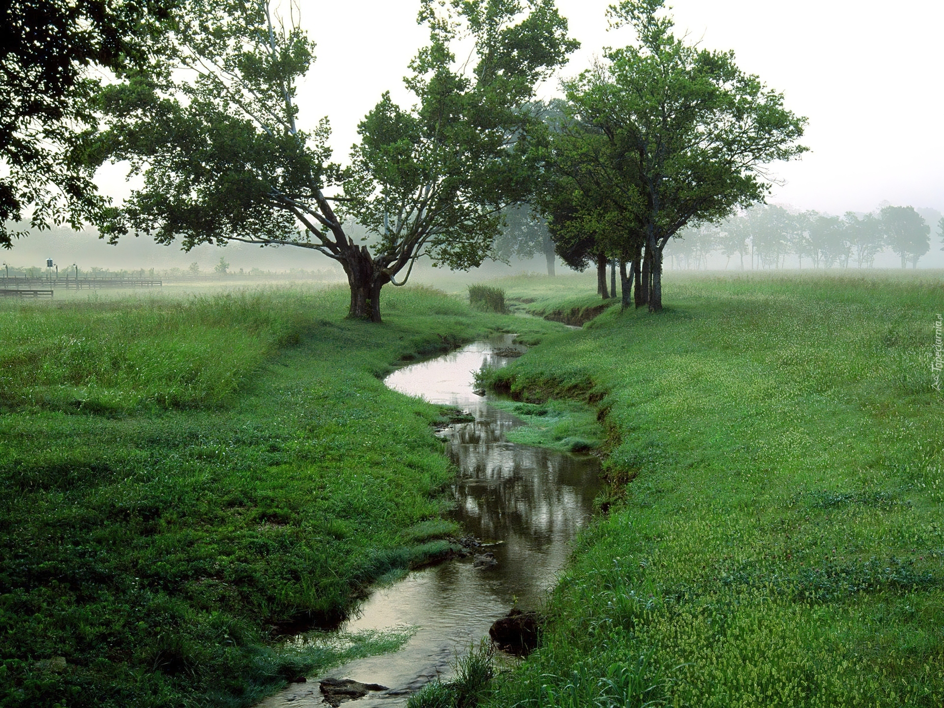 Edytor tapety: Zielona, Łąka, Wąska, Rzeczka, Drzewa