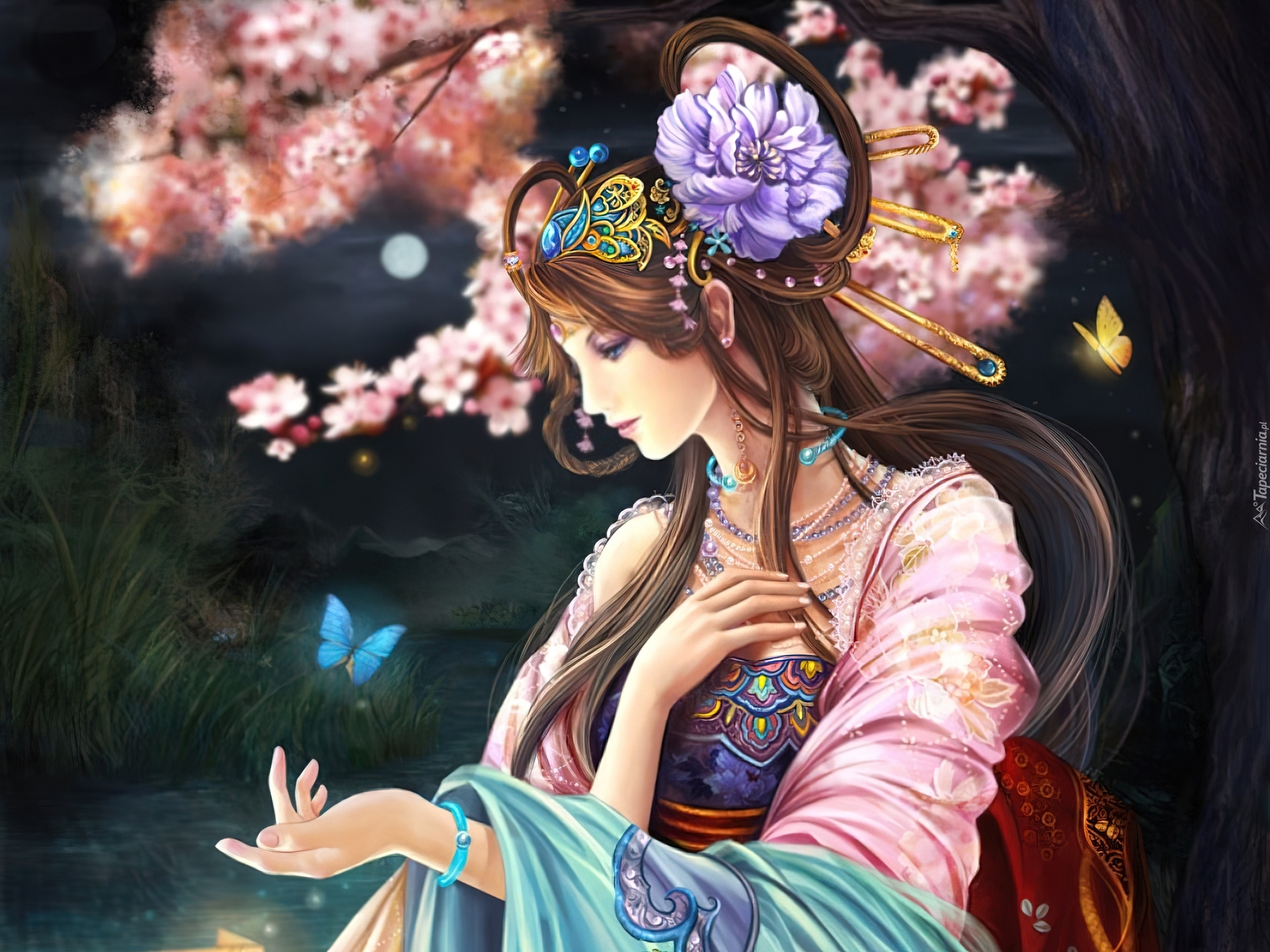 Edytor tapety: Kobieta, Ręka, Motyl, Fantasy
