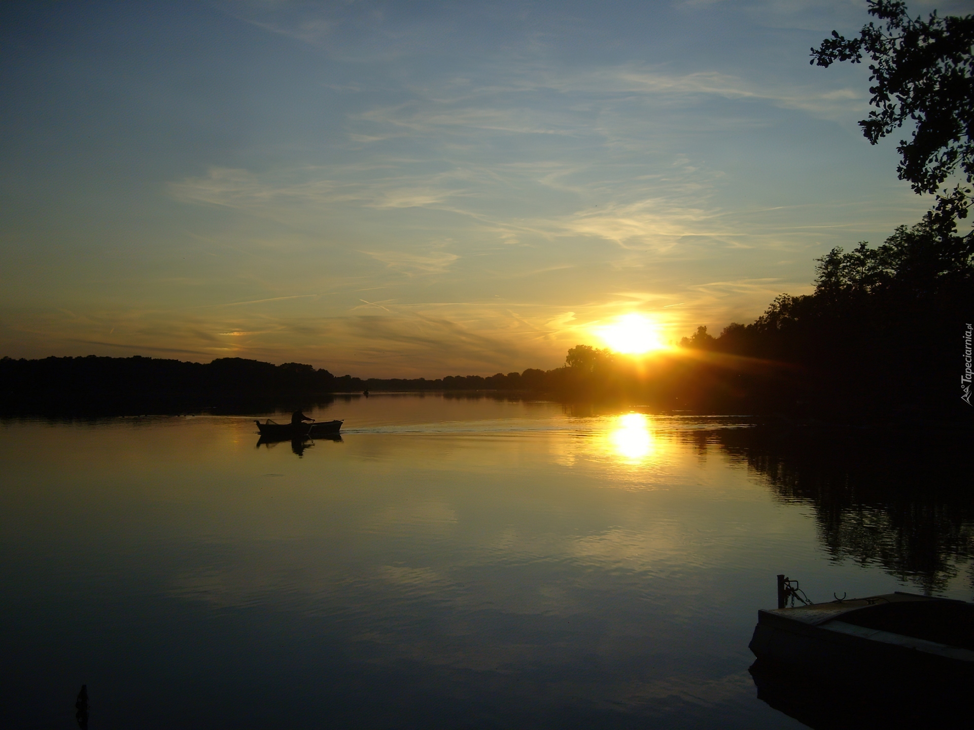 Edytor tapety: Jezioro, Zachód, Słońca, Wędkarz