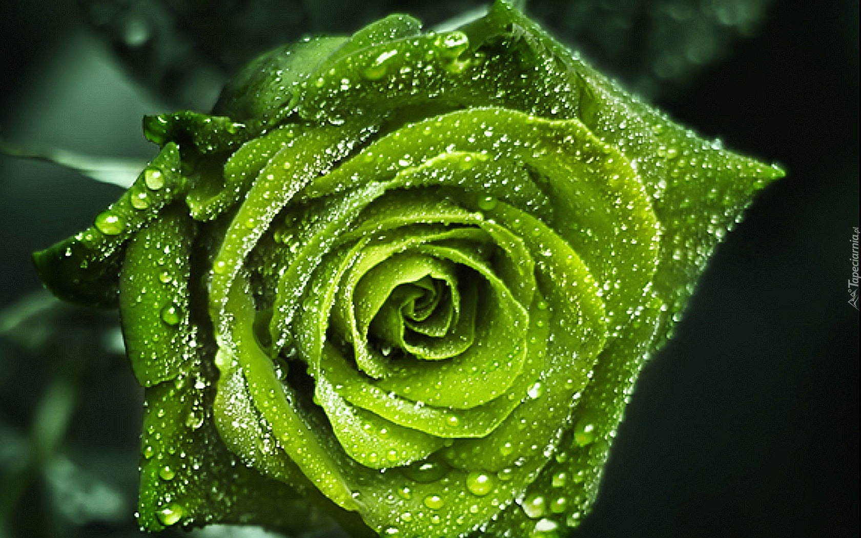 Edytor tapety: Zielona, Róża, Krople, Deszczu