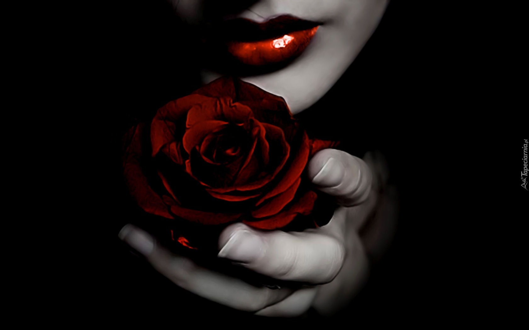 Edytor tapety: Kobiece, Usta, Czerwona, Róża