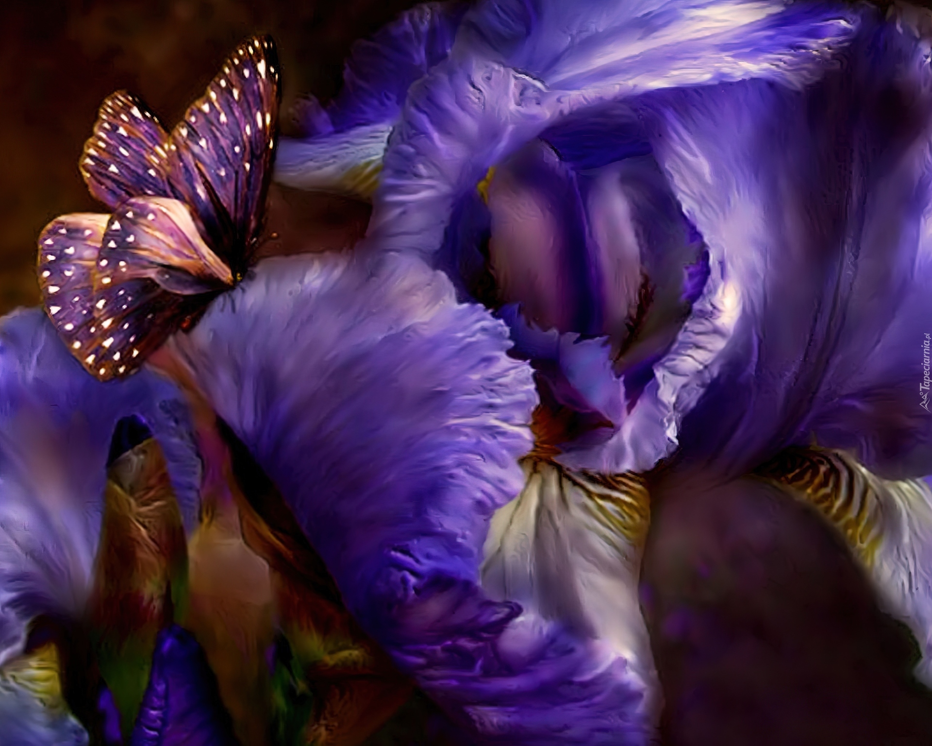 Edytor tapety: Fioletowy, Motyl, Irysy