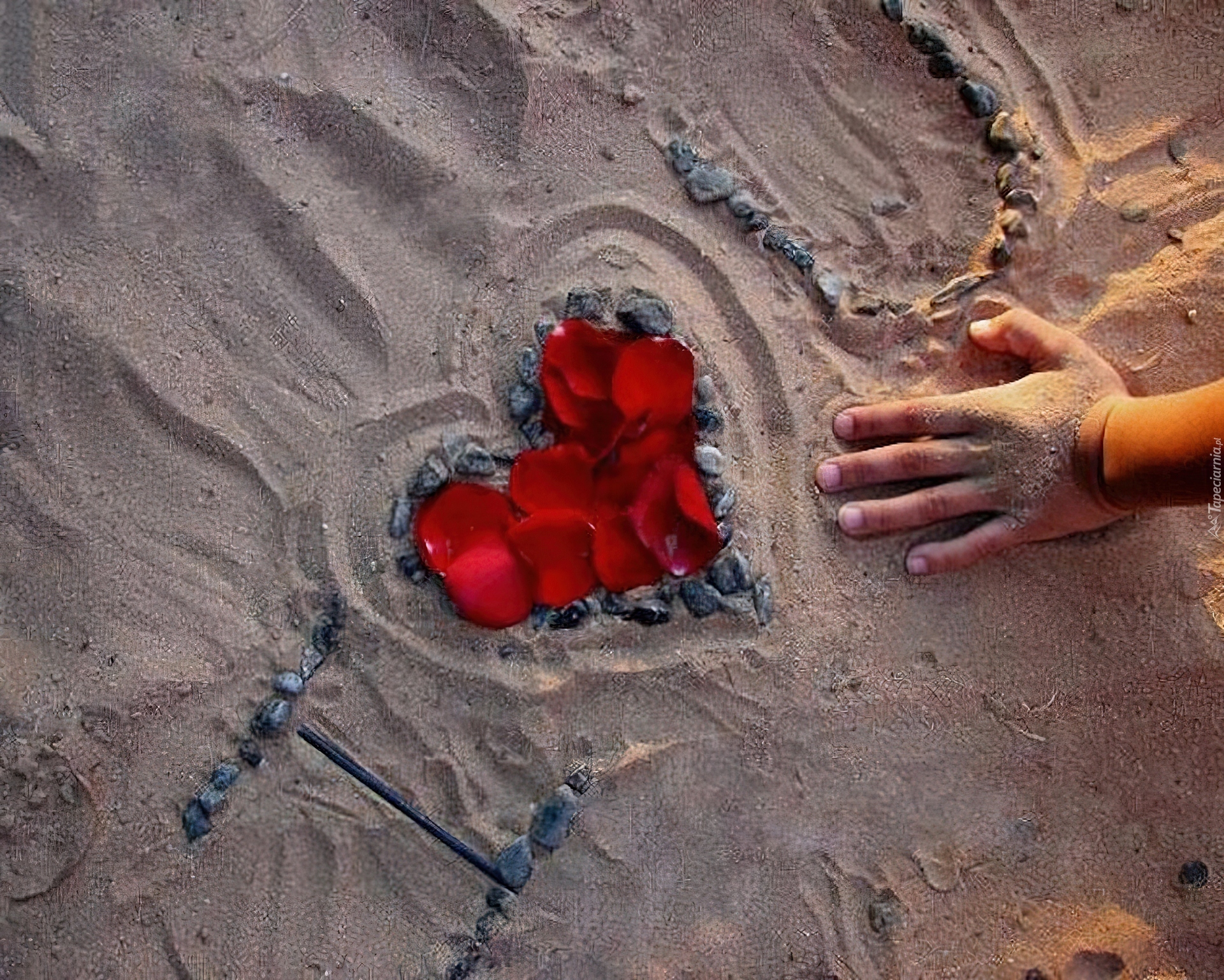 Edytor tapety: Piasek, Kamyki, Płatki, Miłość