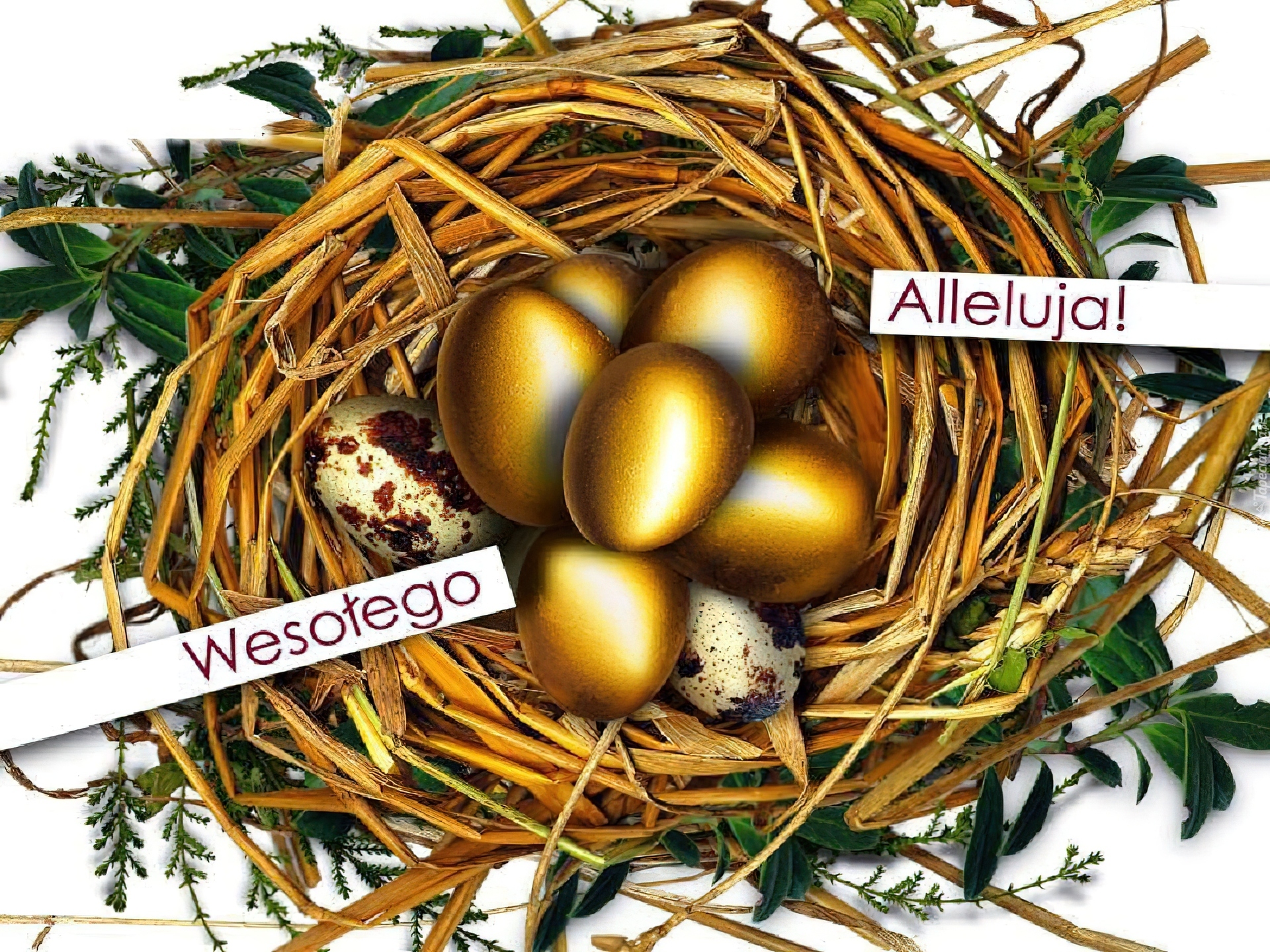 Edytor tapety: Gniazdko, Złote, Pisanki, Wesołego, Alleluja