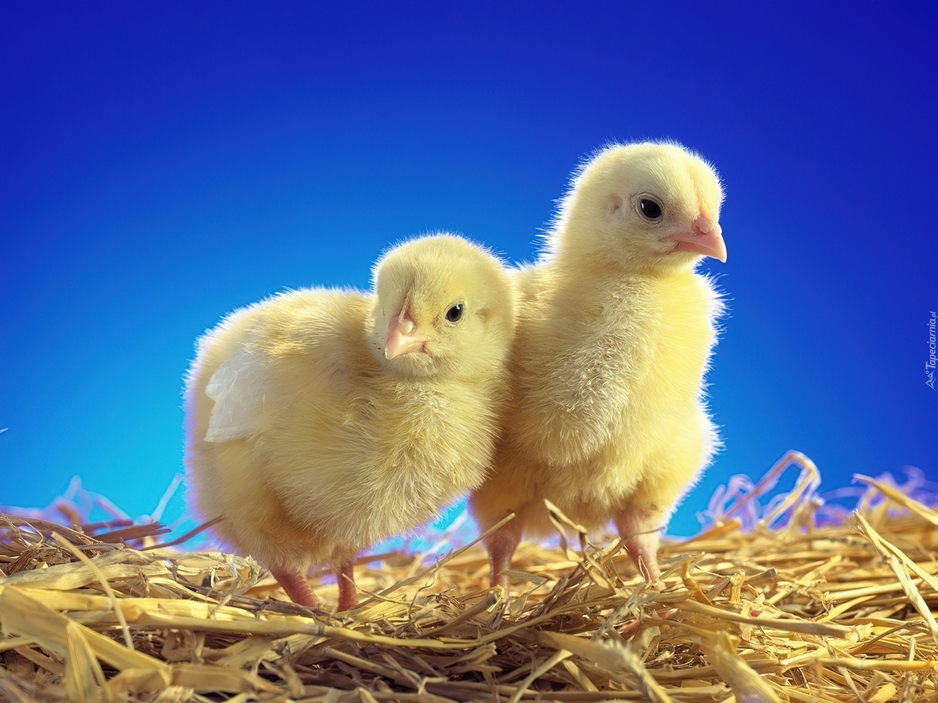 Edytor tapety: Dwa, Kurczaczki, Słoma, Wielkanoc
