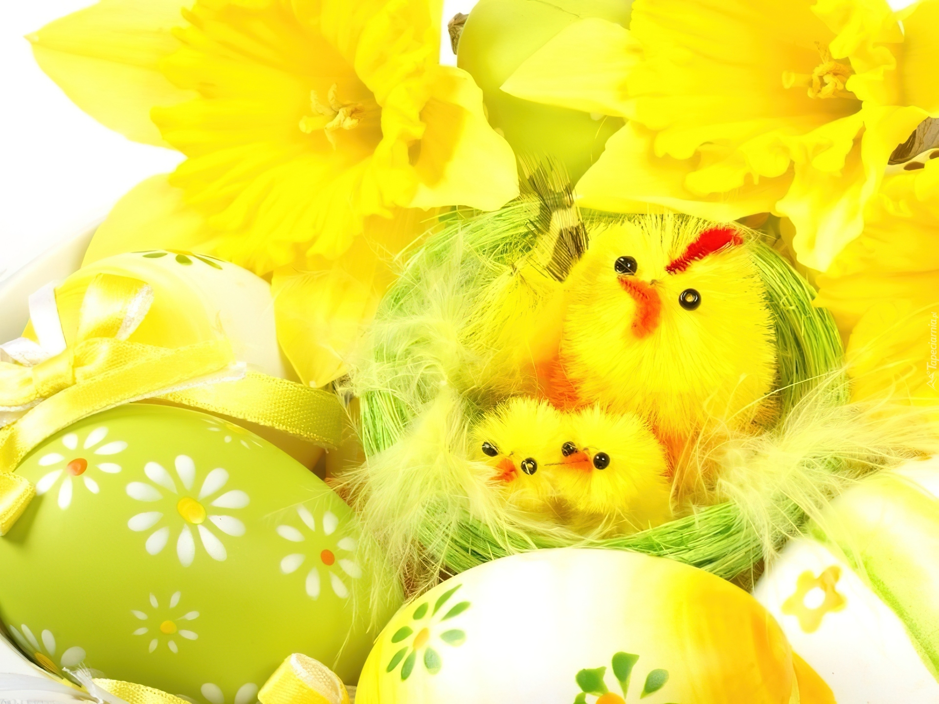 Edytor tapety: Wielkanoc, Zielone, Gniazdko, Kurczaczki, Pisanki