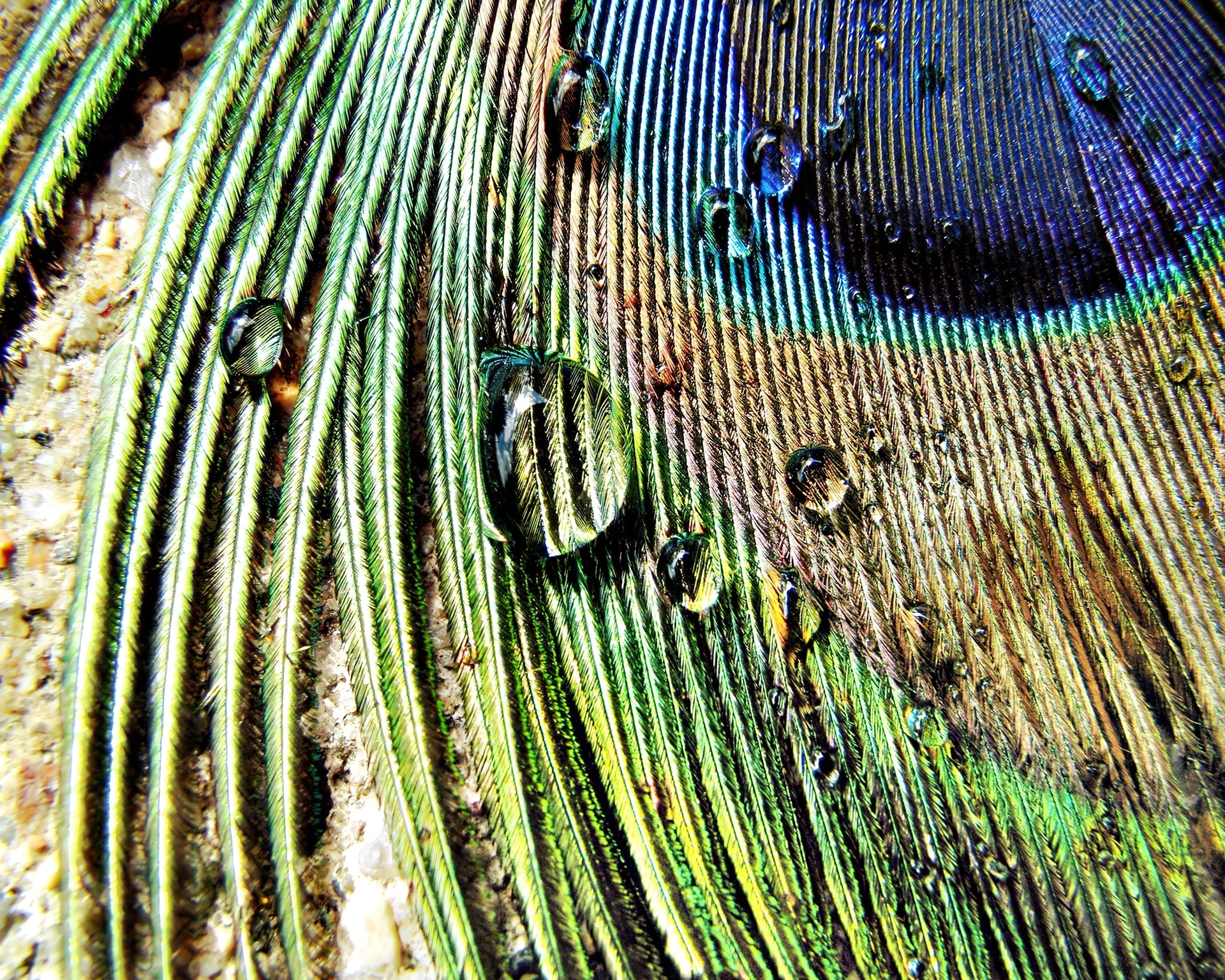 Edytor tapety: Pawie, Pióro, Krople, Wody