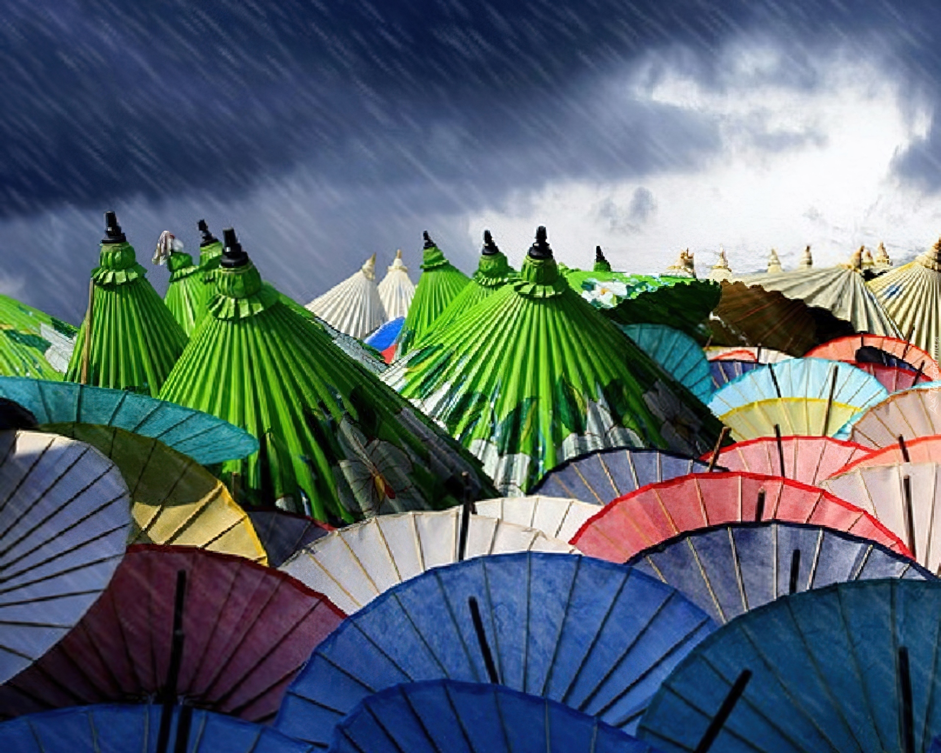 Edytor tapety: Kolorowe, Parasolki, Deszcz