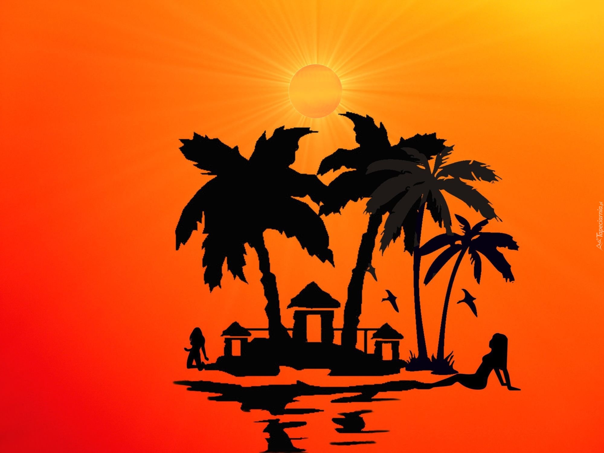 Edytor tapety: Rysunek, Palmy, Kobiety, Słońce