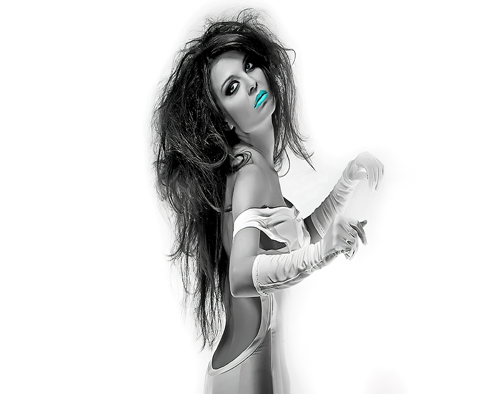 Edytor tapety: Kobieta, Włosy, Niebieskie, Usta