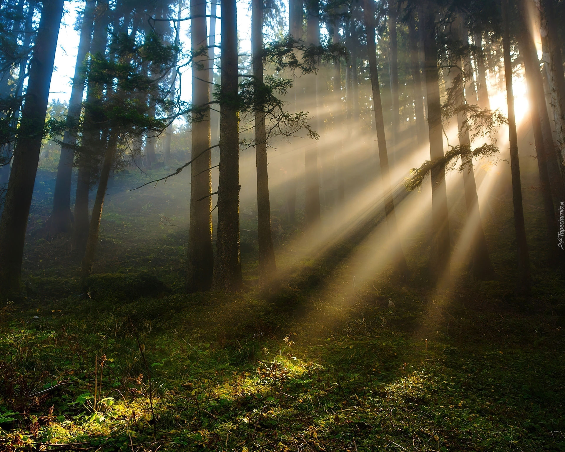 Edytor tapety: Las, Drzewa, Promienie, Słońca