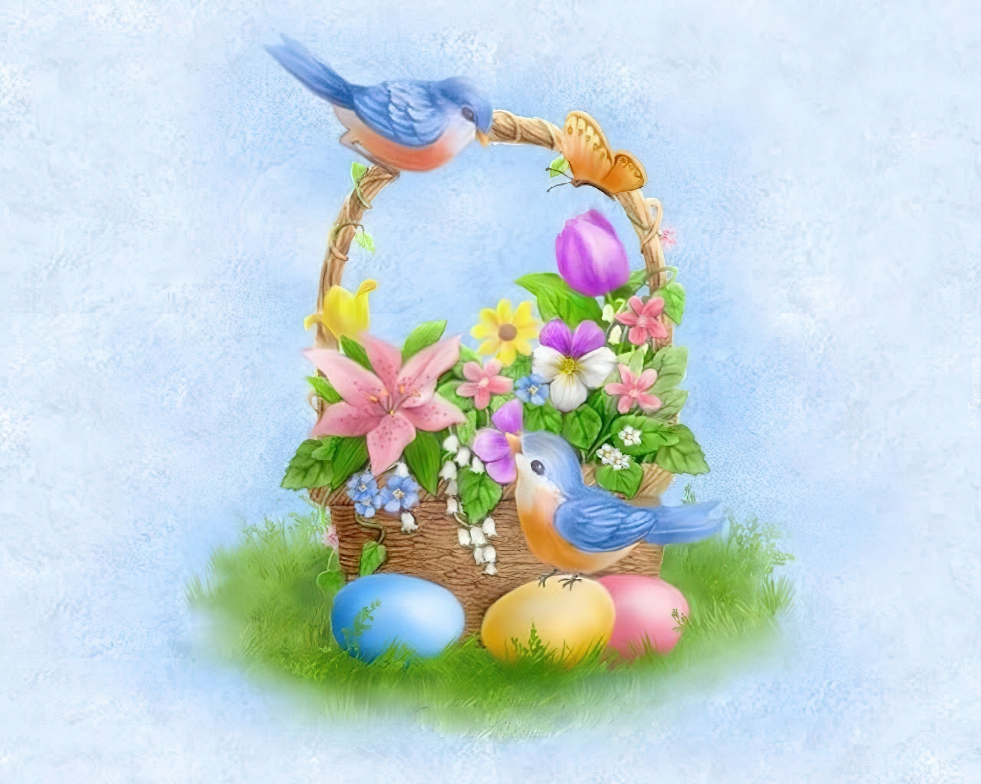 Edytor tapety: Koszyk, Wielkanocny, Ptaki