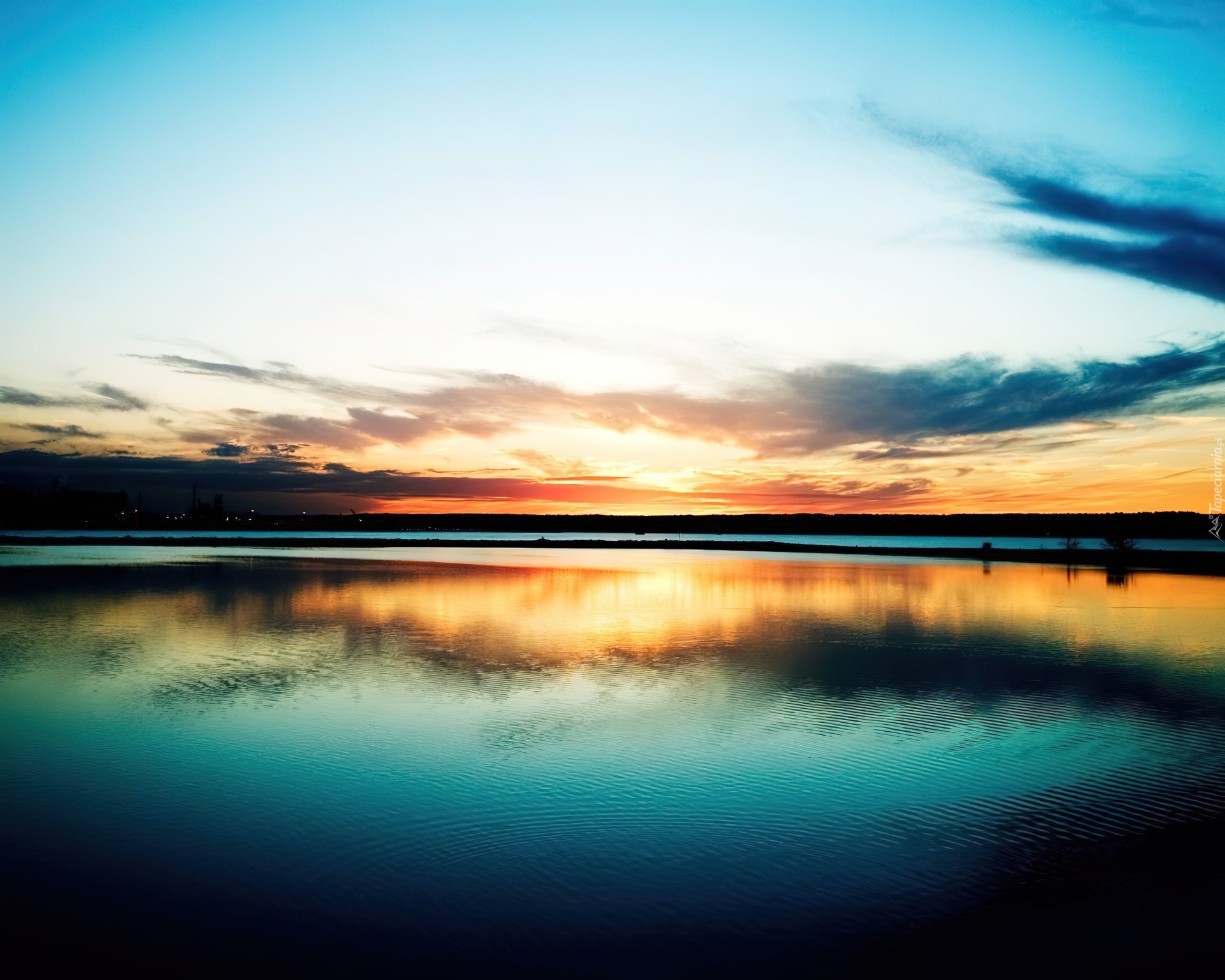 Edytor tapety: Zachód, Słońca, Odbicie, Tafla, Jeziora