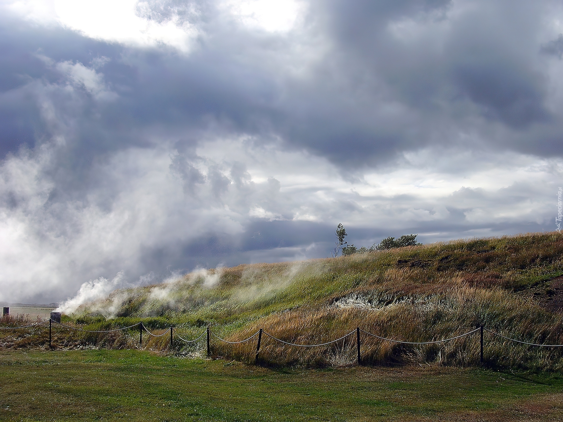 Edytor tapety: Zielona, Trawa, Pagórki, Ogrodzenie
