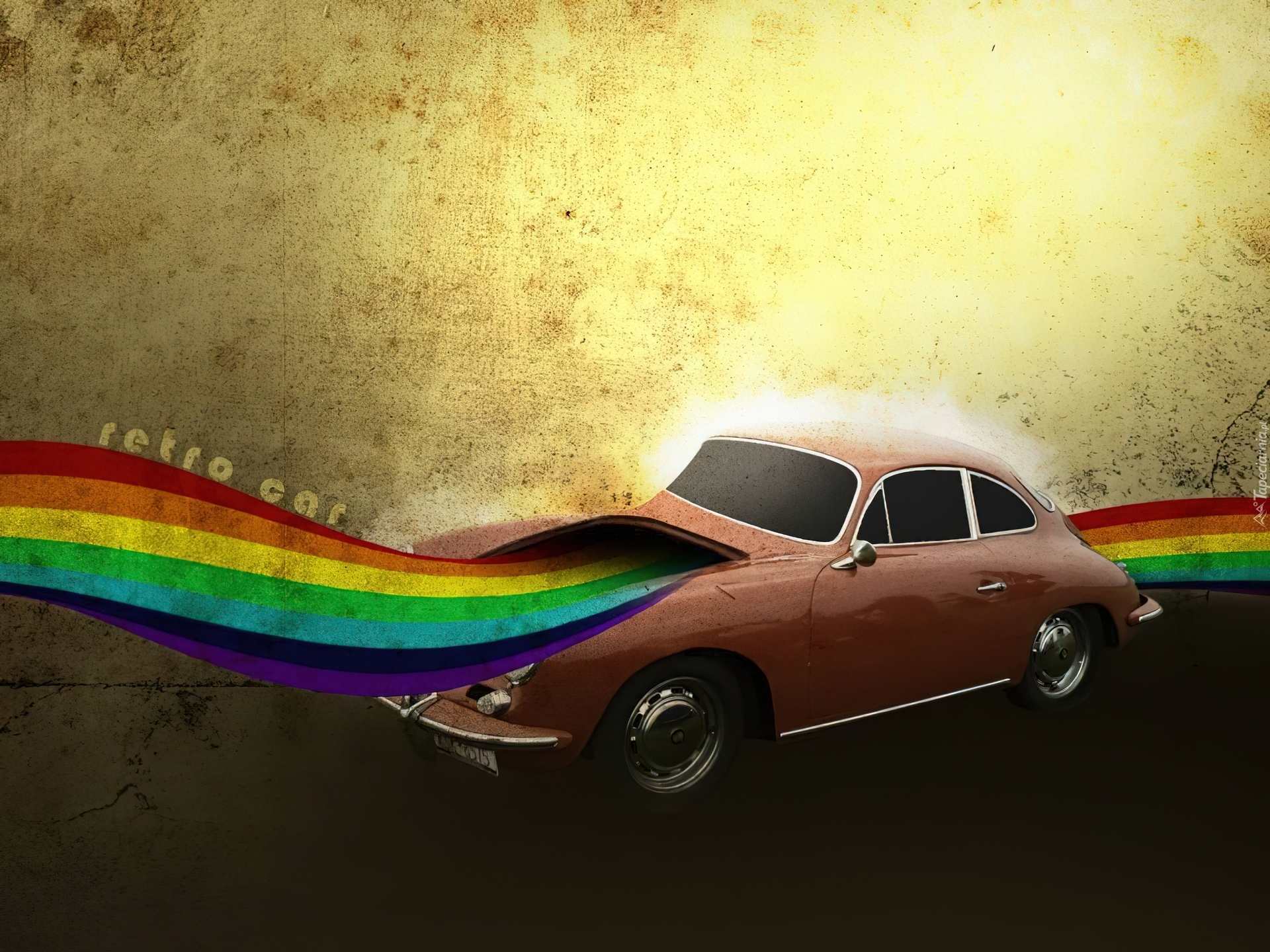 Edytor tapety: Samochód, Retro, Kolorowa, Wstęga