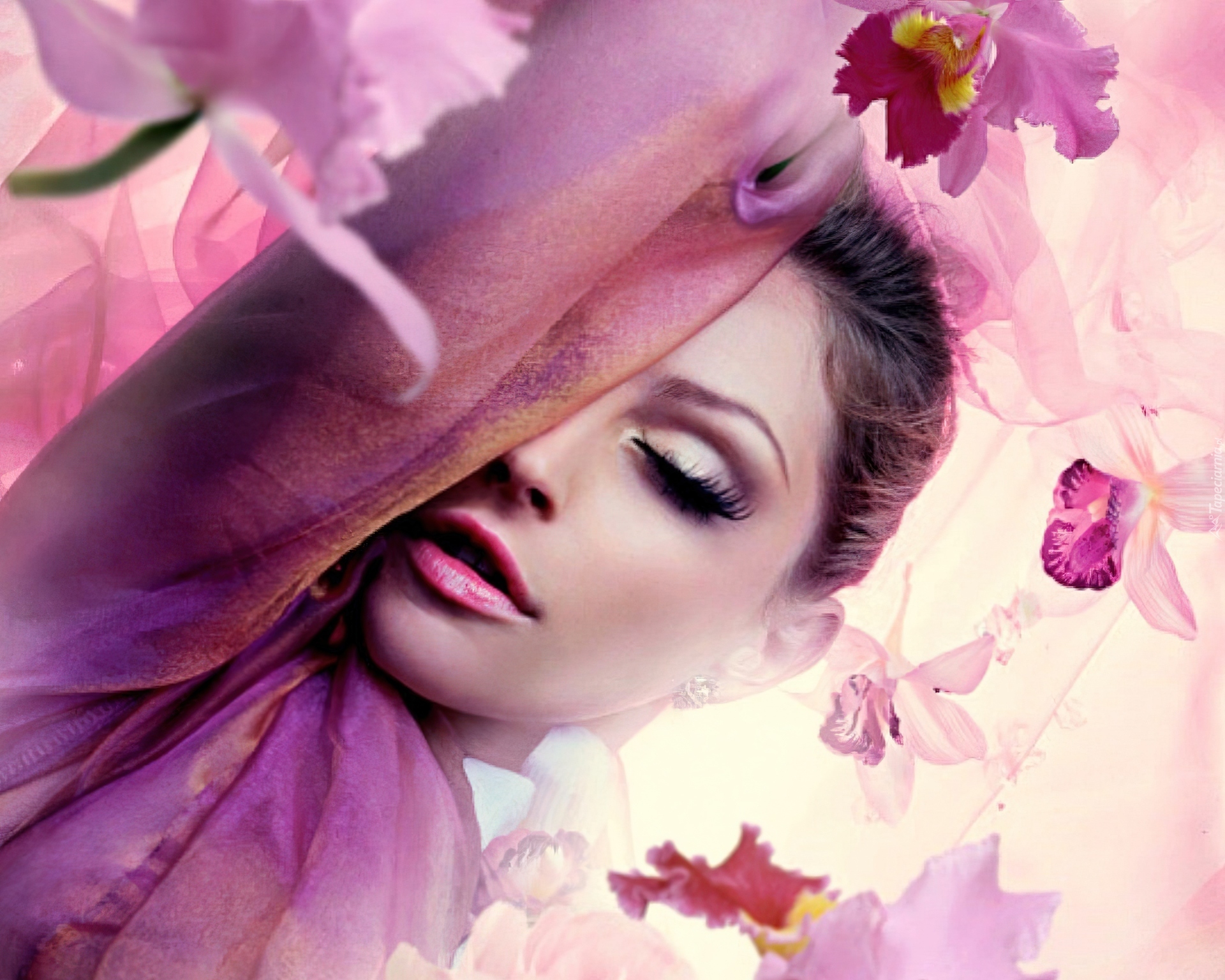 Edytor tapety: Kobieta, Twarz, Kwiaty