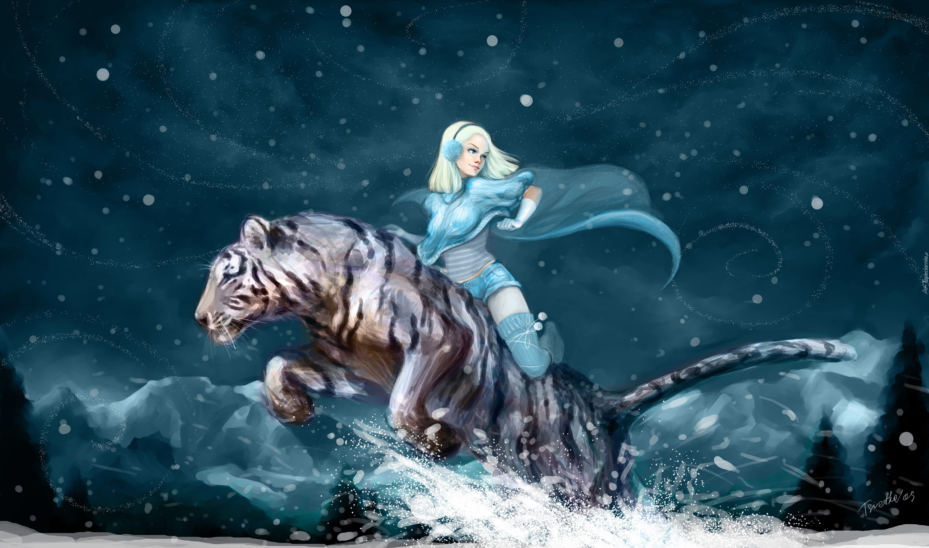 Edytor tapety: Kobieta, Tygrys, Śnieg
