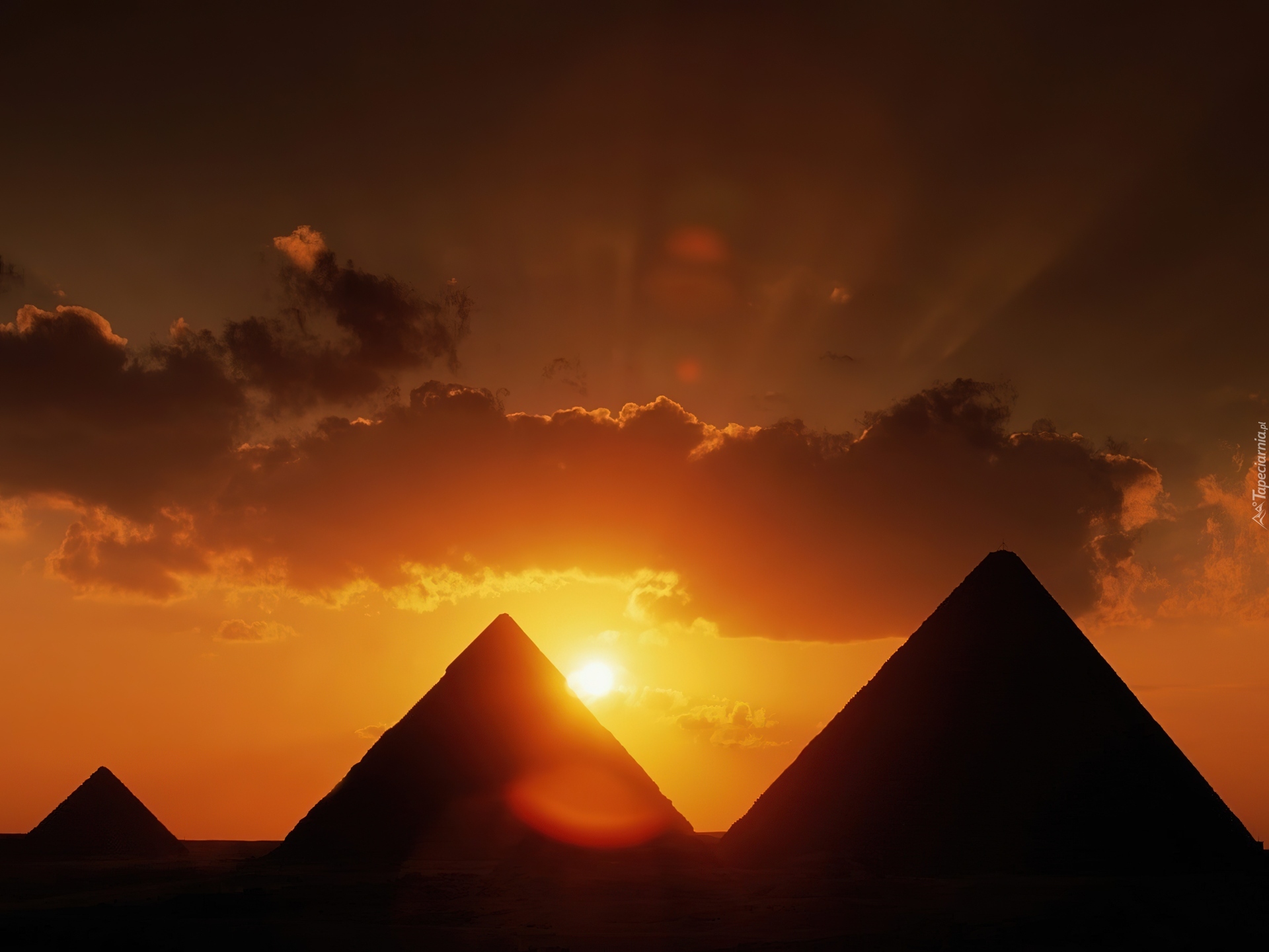 Edytor tapety: Piramidy, Zachód, Słońca, Chmury
