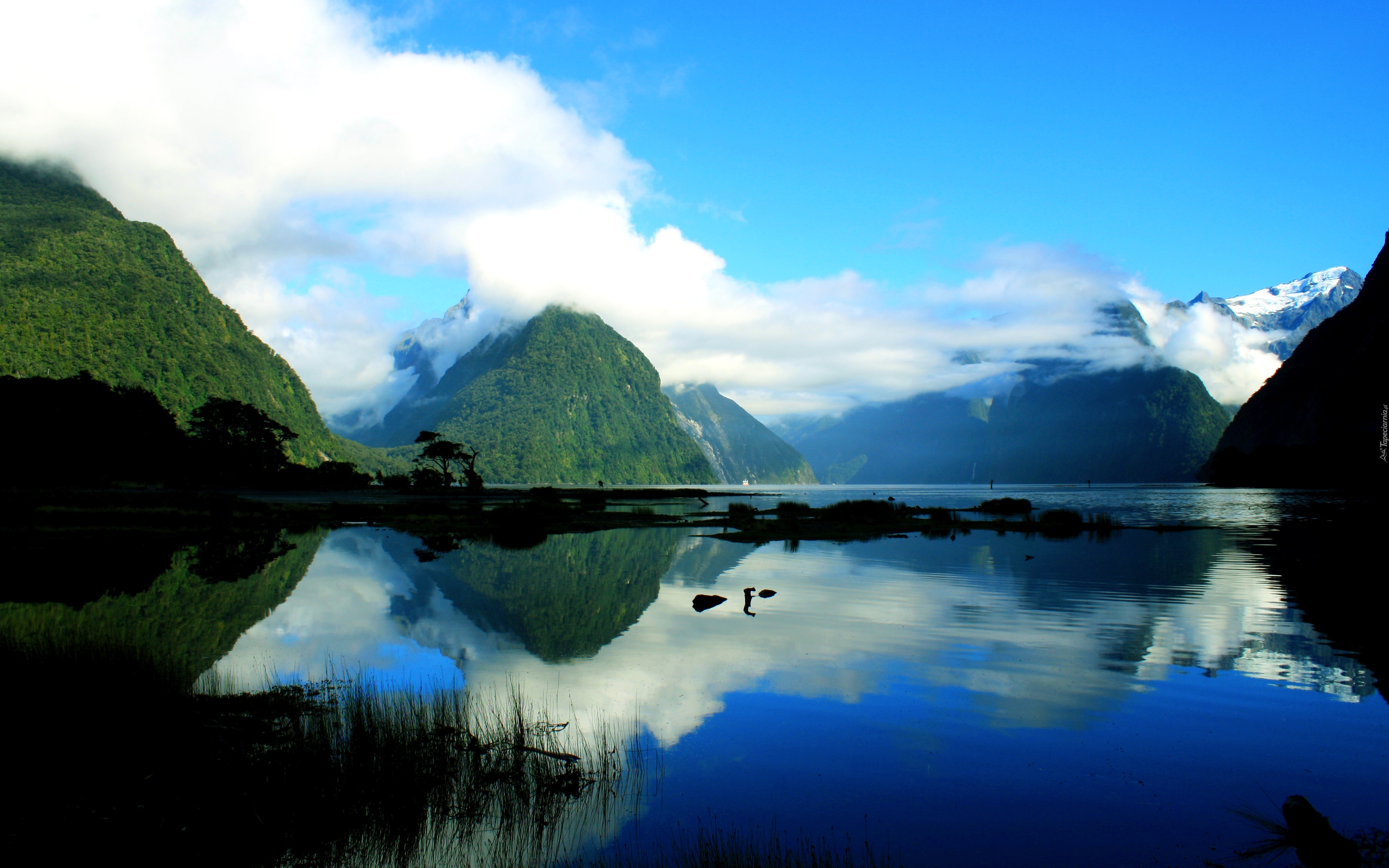 Edytor tapety: Jezioro, Góry, Chmury, Odbicie