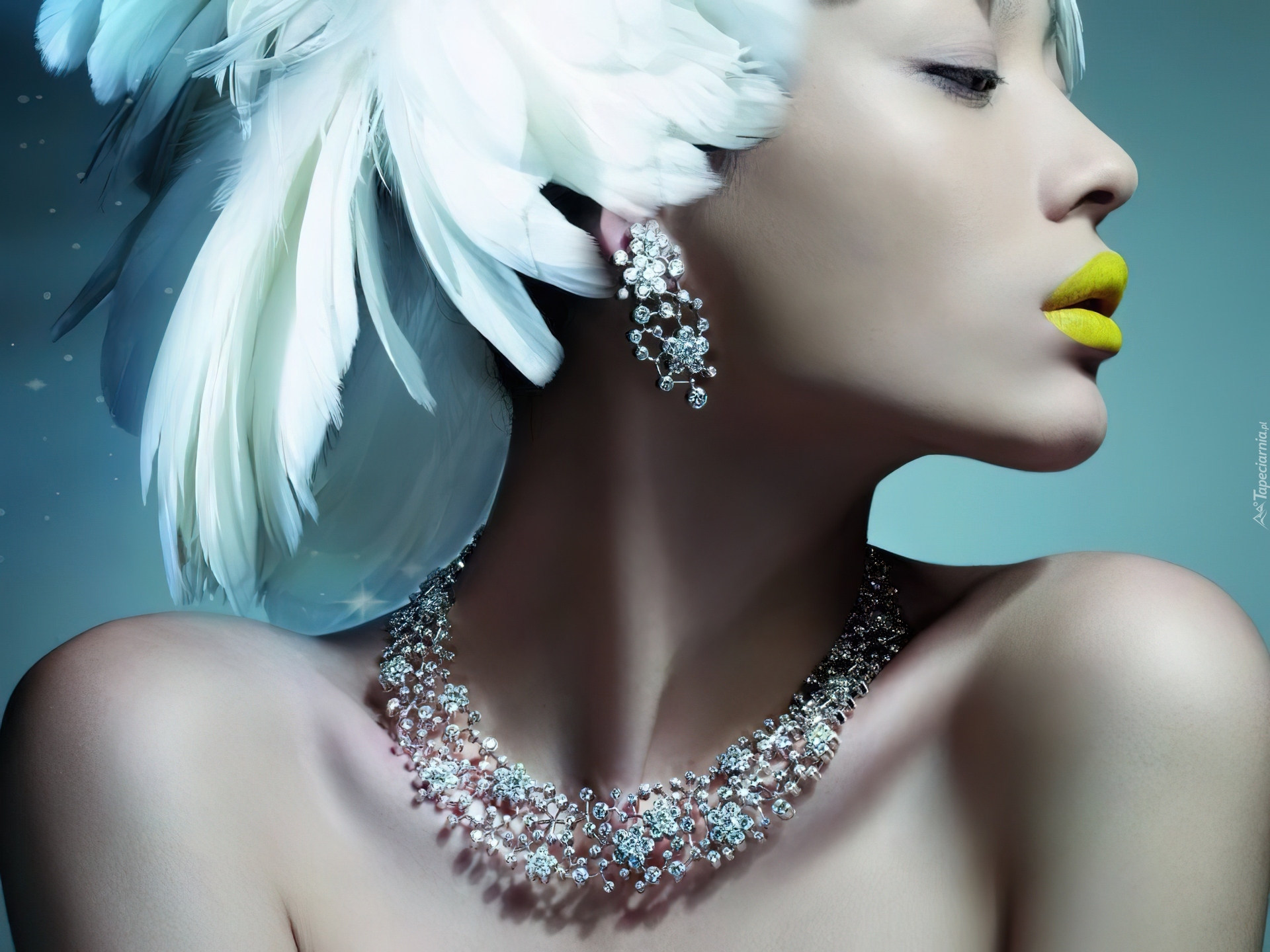Edytor tapety: Azjatka, Żółte, Usta, Pióra