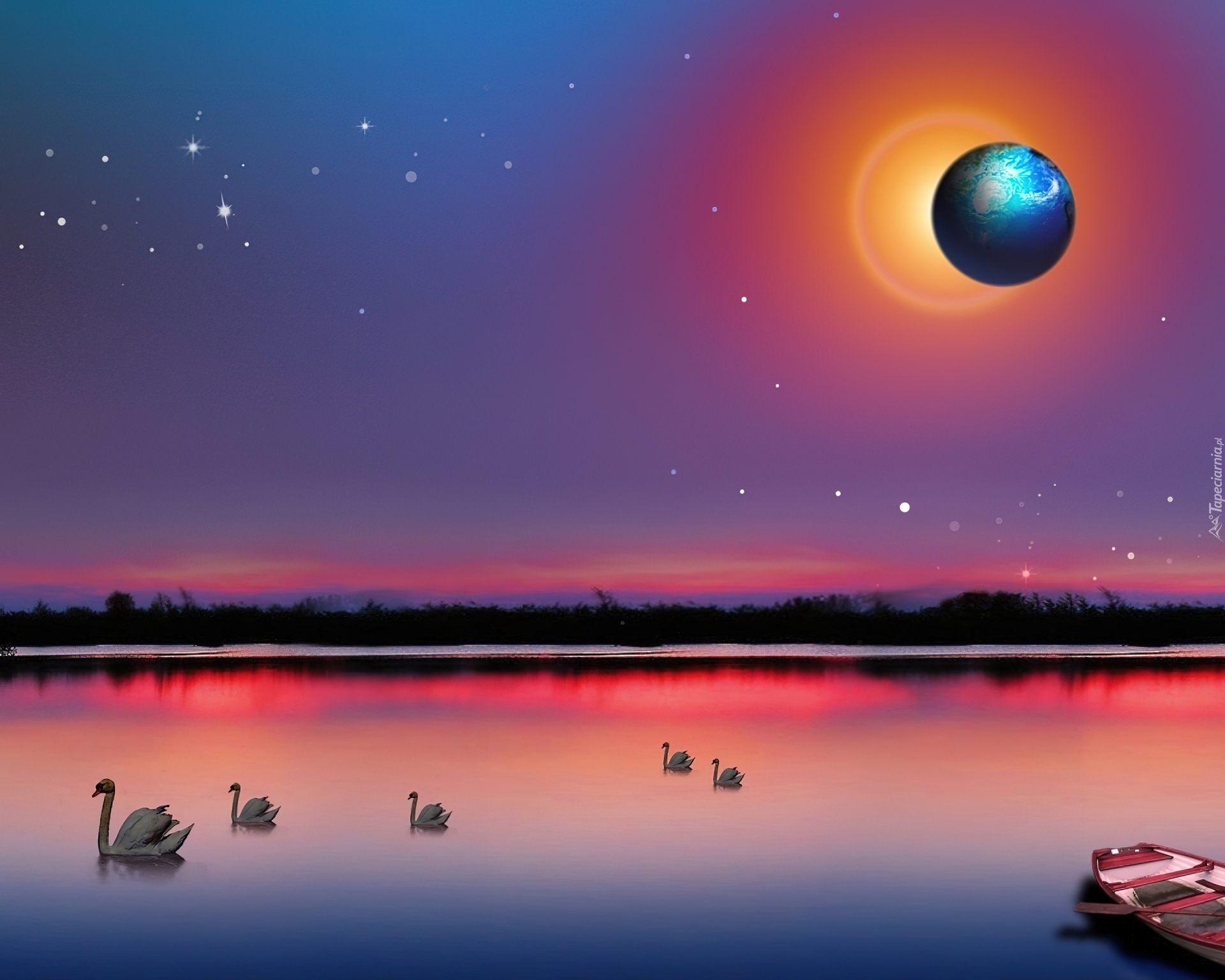 Edytor tapety: Woda, Łabędzie, Ziemia
