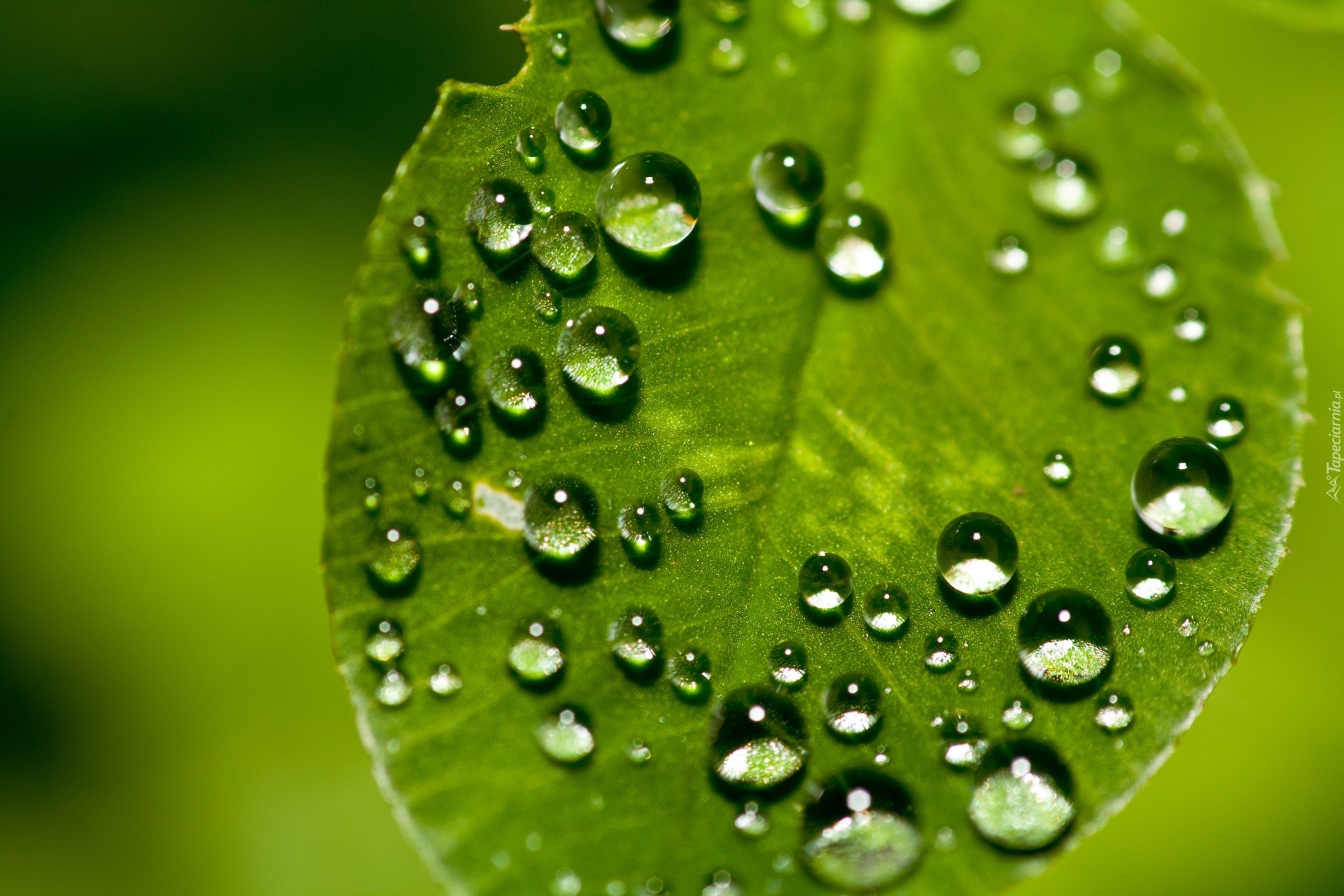 Edytor tapety: Zielony, Liść, Krople, Wody