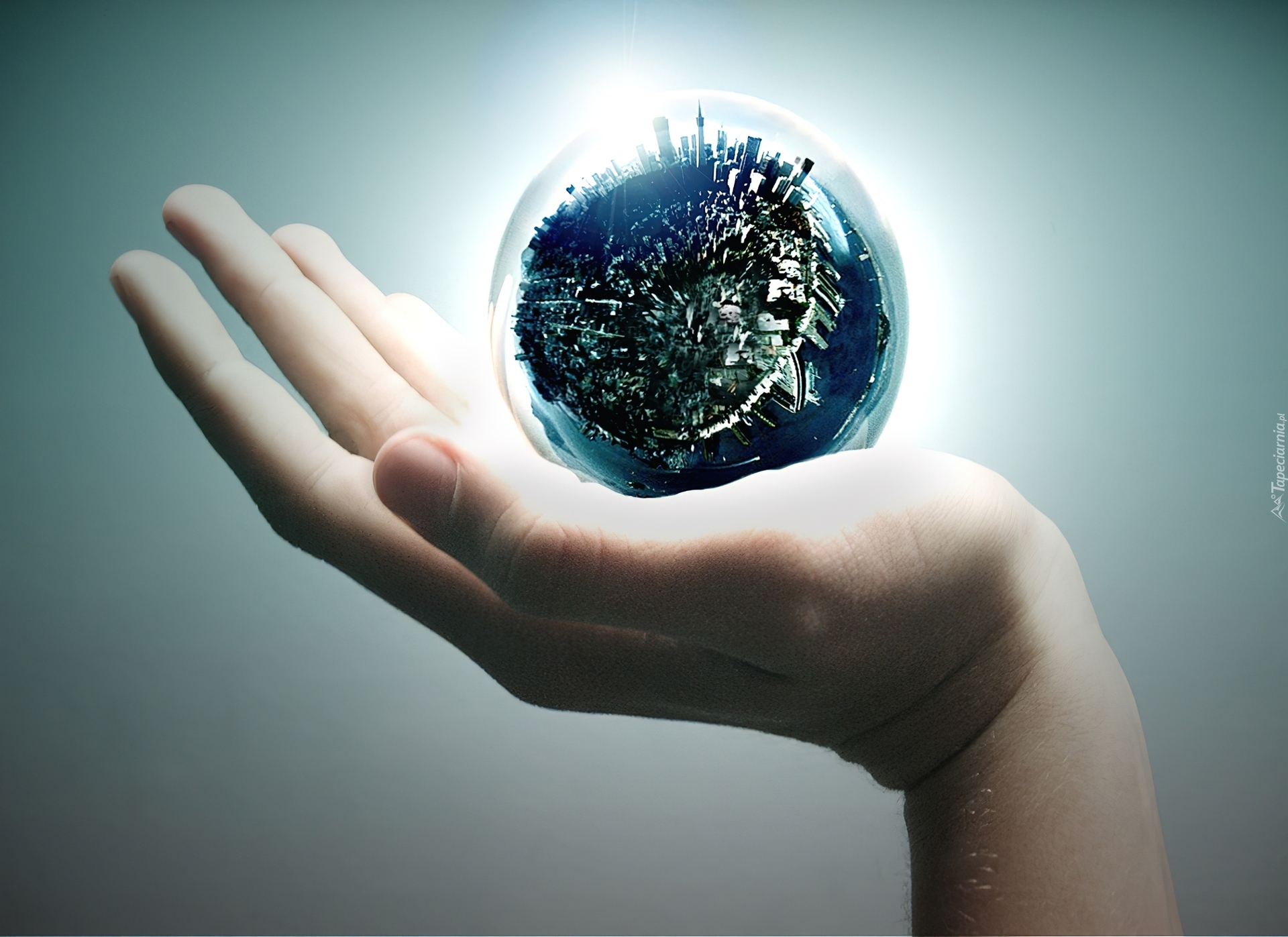 Edytor tapety: Ręka, Kula, Miasto 3D, Wektorowa