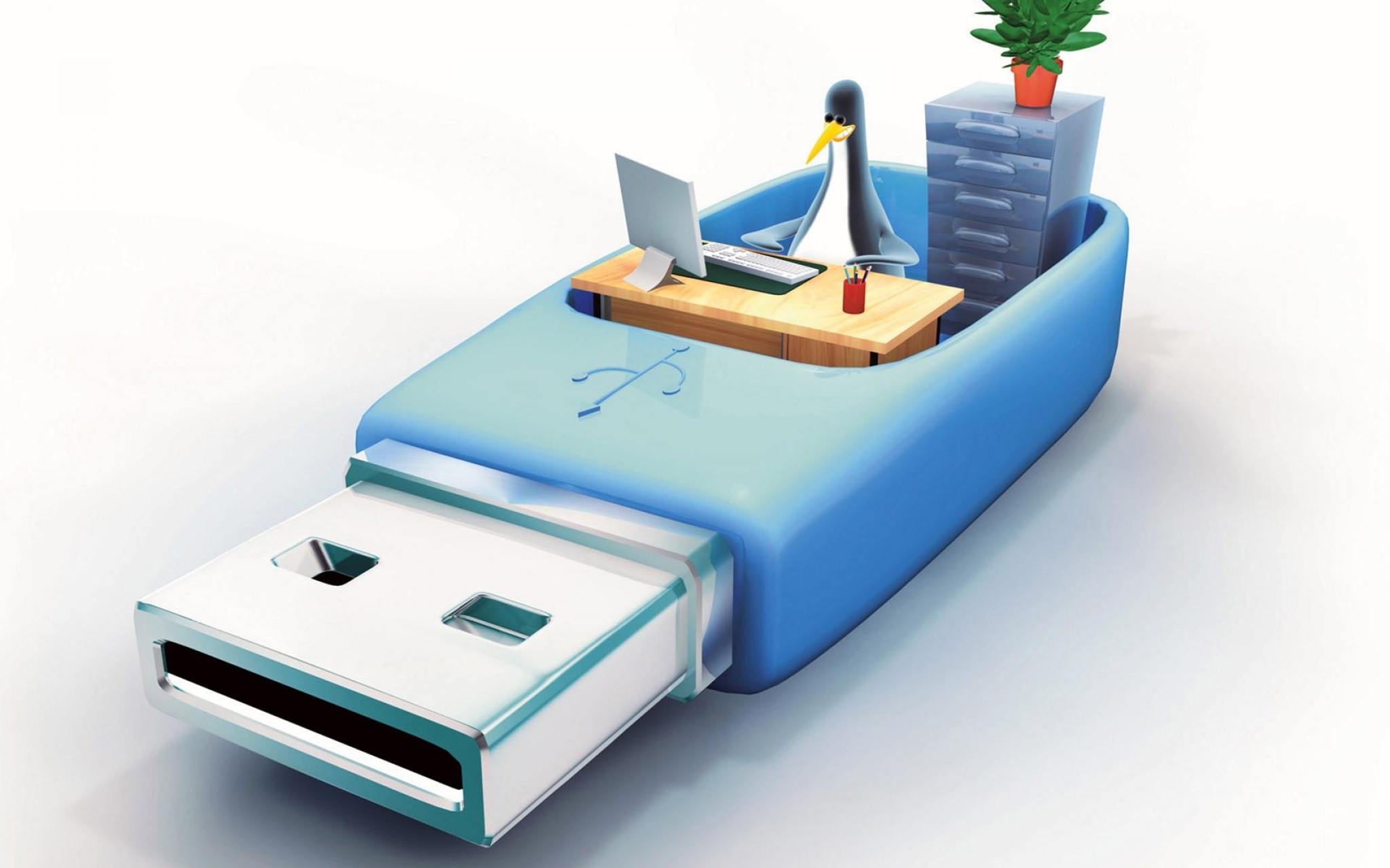Edytor tapety: Niebieski, Pendrive, Pingwin, Biuro