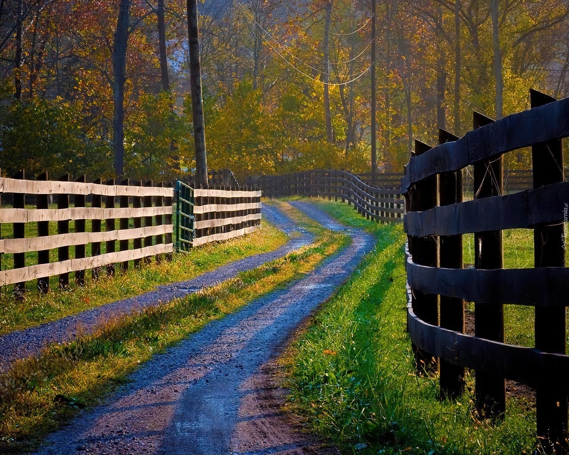 Edytor tapety: Polna, Droga, Drewniany, Płot