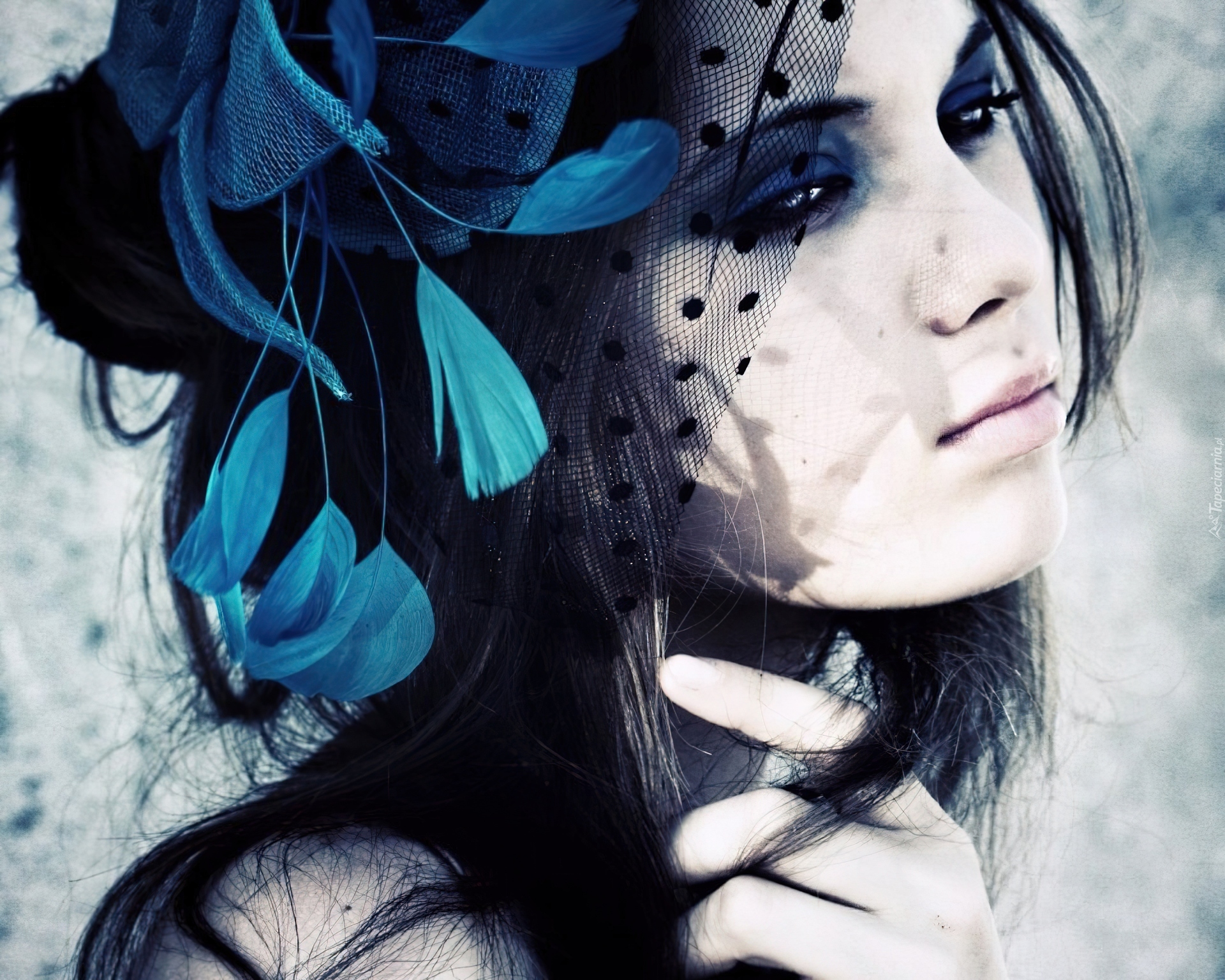 Edytor tapety: Dziewczyna, Twarz, Pióra