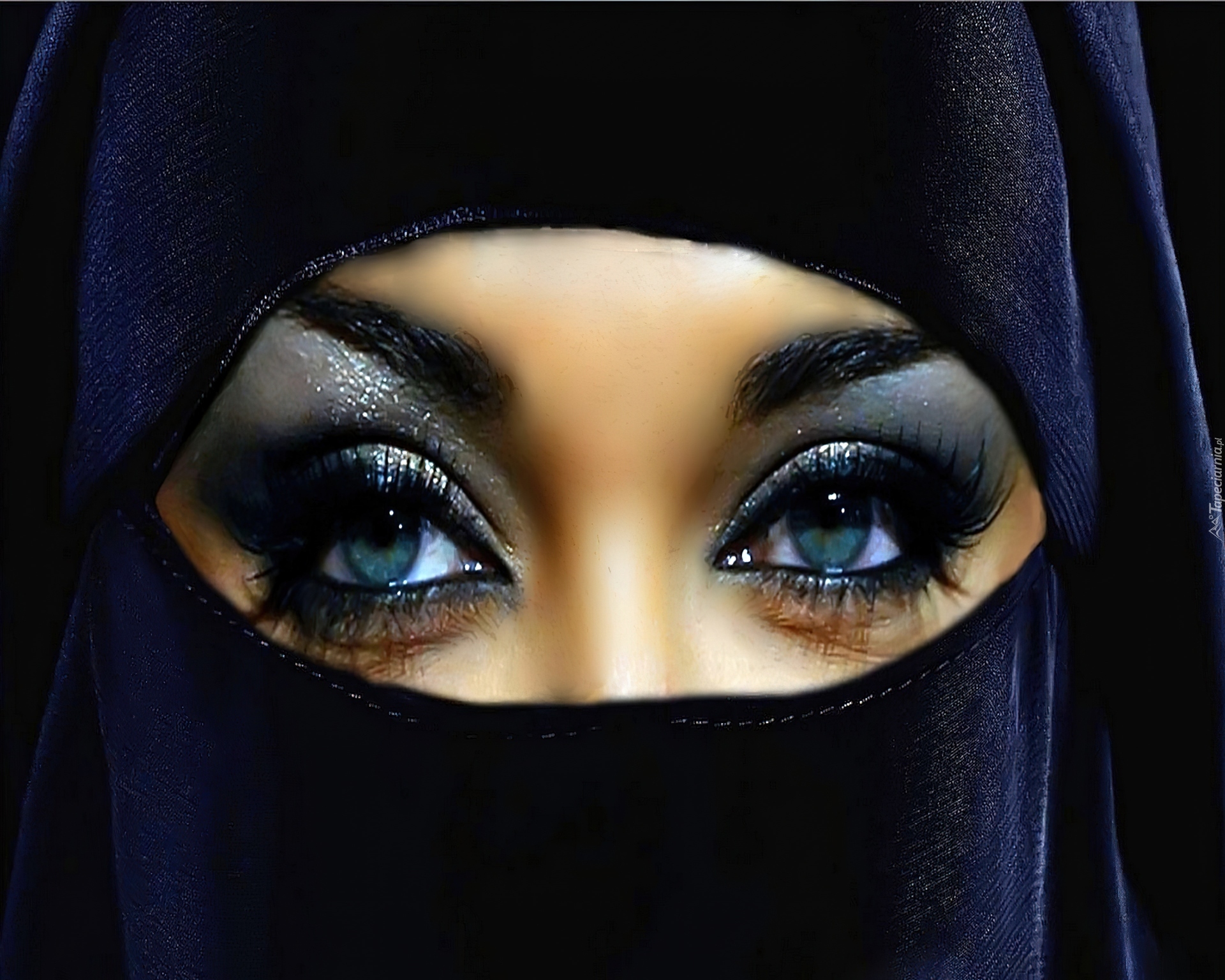 Edytor tapety: Kobieta, Twarz, Niebieskie, Oczy, Chusta