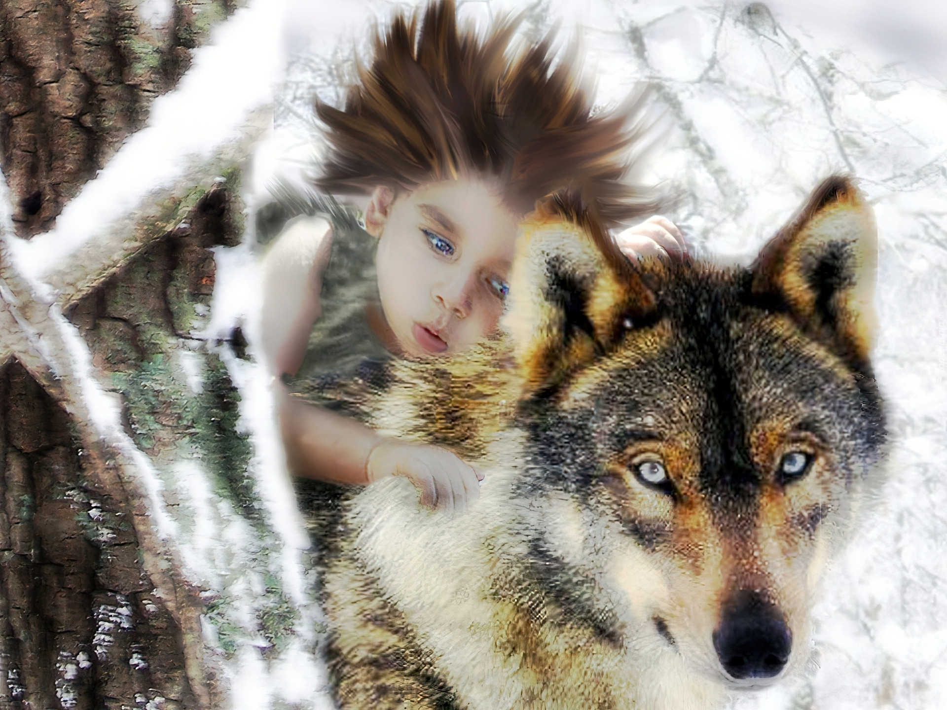Edytor tapety: Dziecko, Wilk, Grafika
