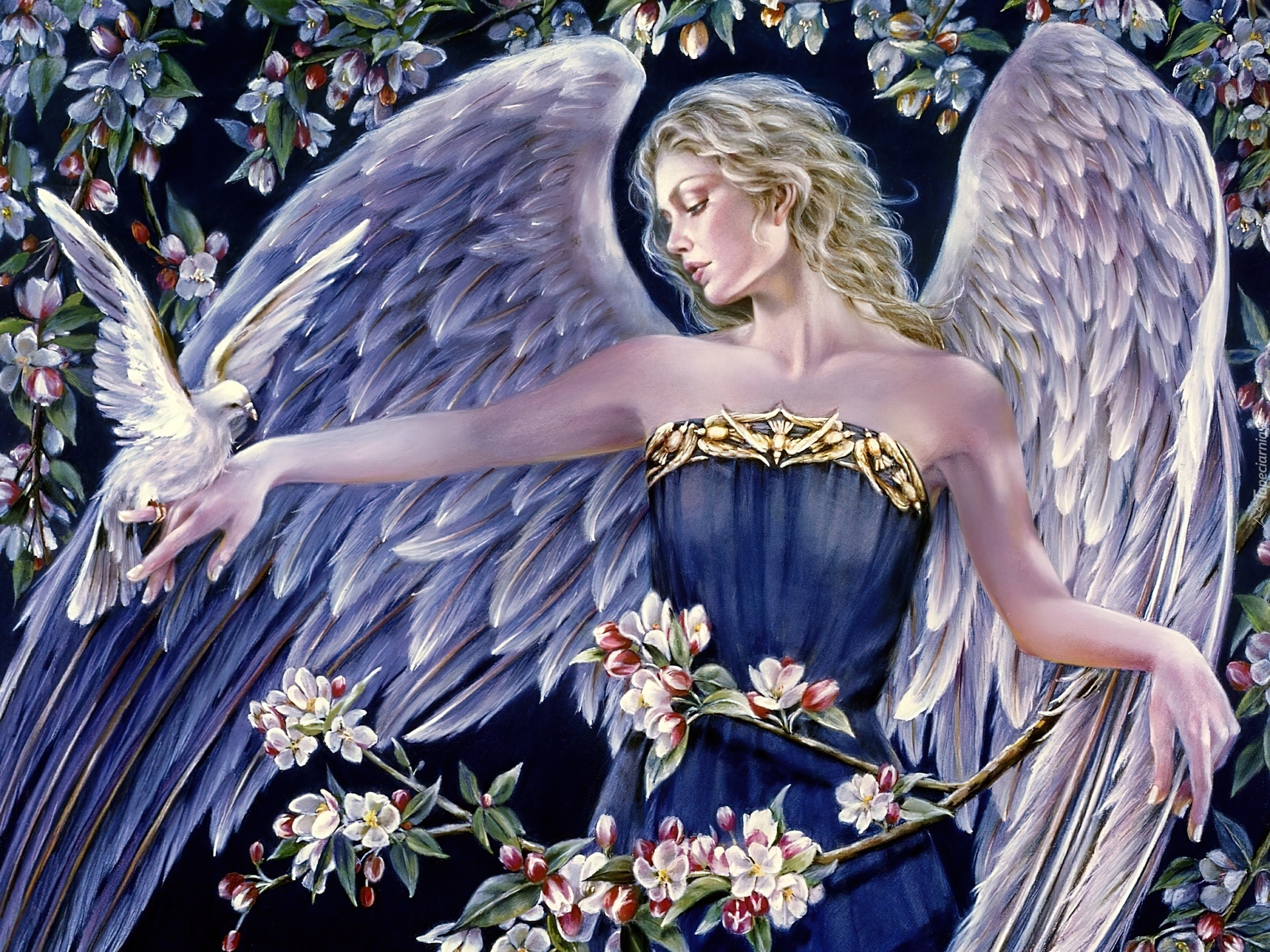 Edytor tapety: Anioł, Kwiaty, Gołąb