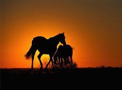Edytor tapety: Konie, Zachód, Słońca