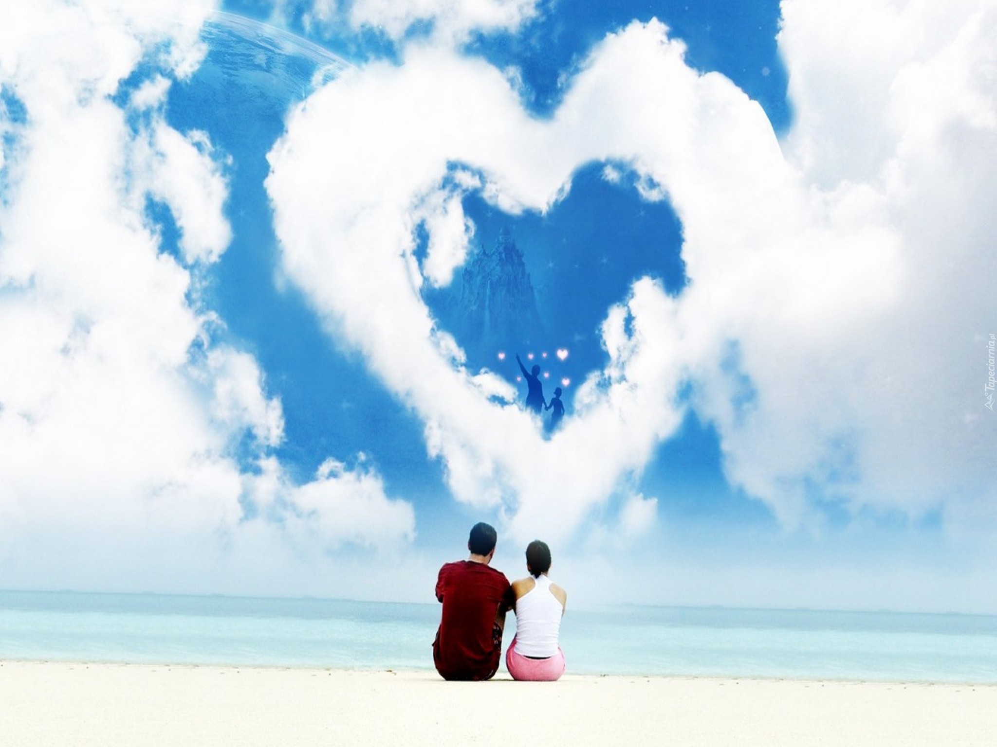 Edytor tapety: Zakochana, Para, Niebo, Chmury, Kształt, Serca