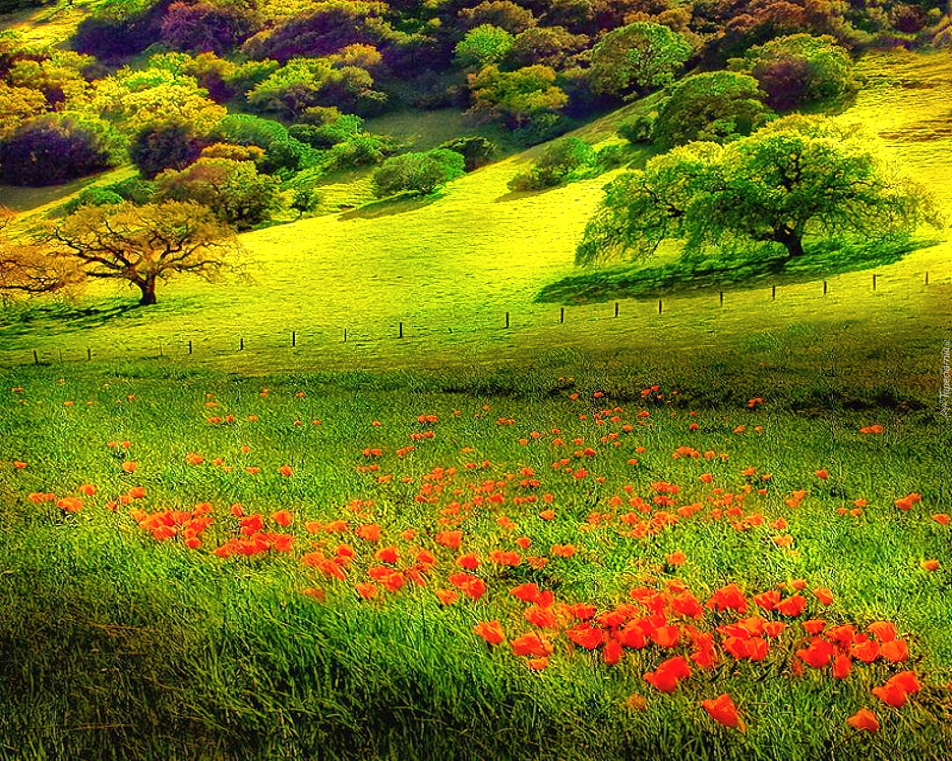 Edytor tapety: Łąka, Trawa, Kwiaty
