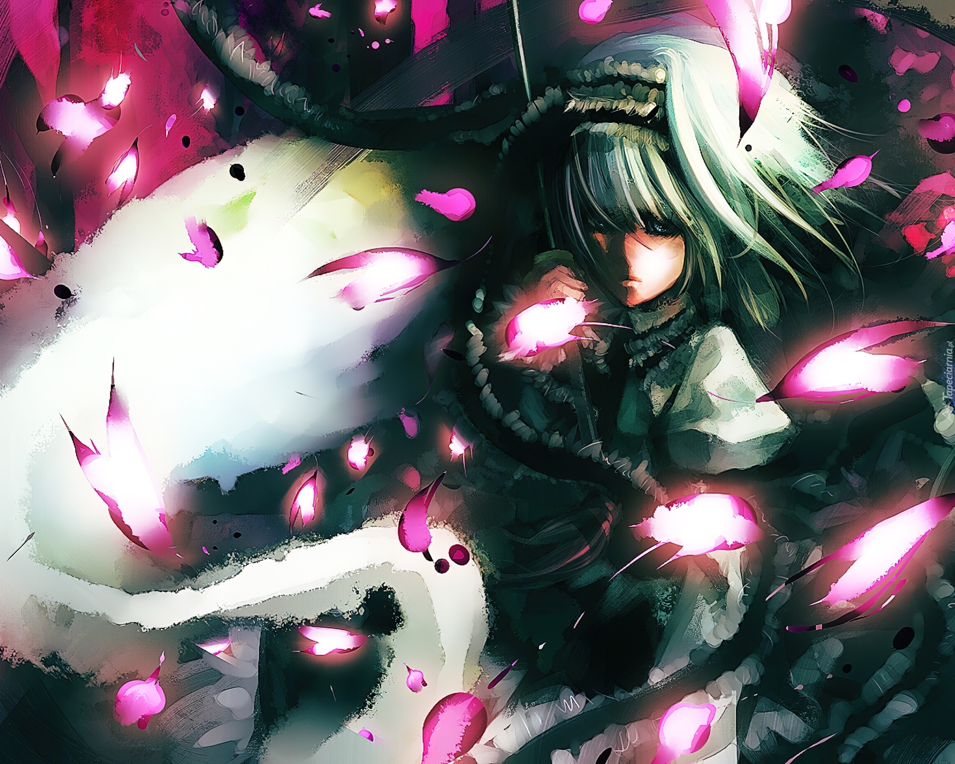 Edytor tapety: Kobieta, Płatki, Kwiatów, Anime