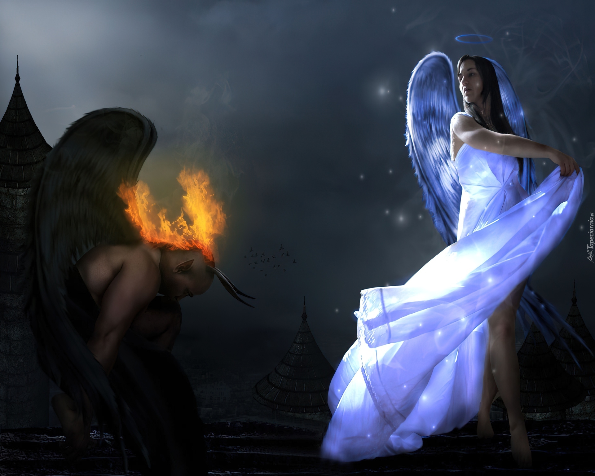 Edytor tapety: Anioł, Diabeł, Płomienie