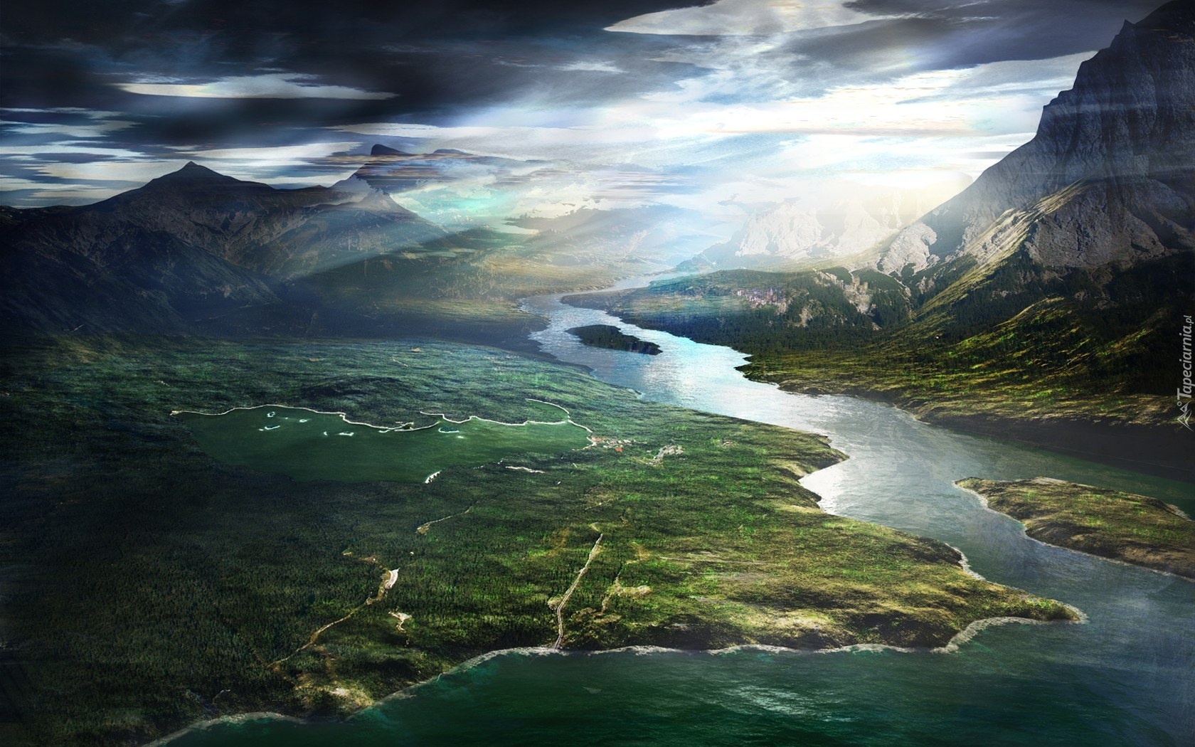 Edytor tapety: Góry, Rzeka, Rozlewisko