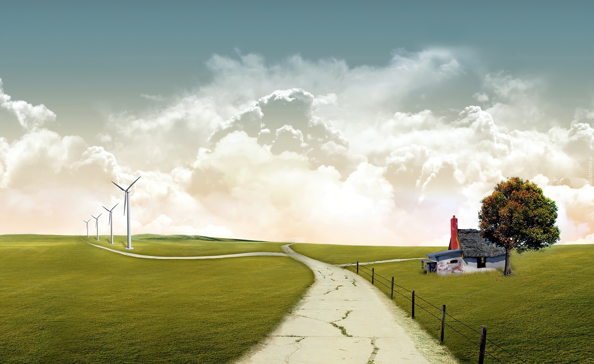 Edytor tapety: Grafika, Wiatraki, Droga
