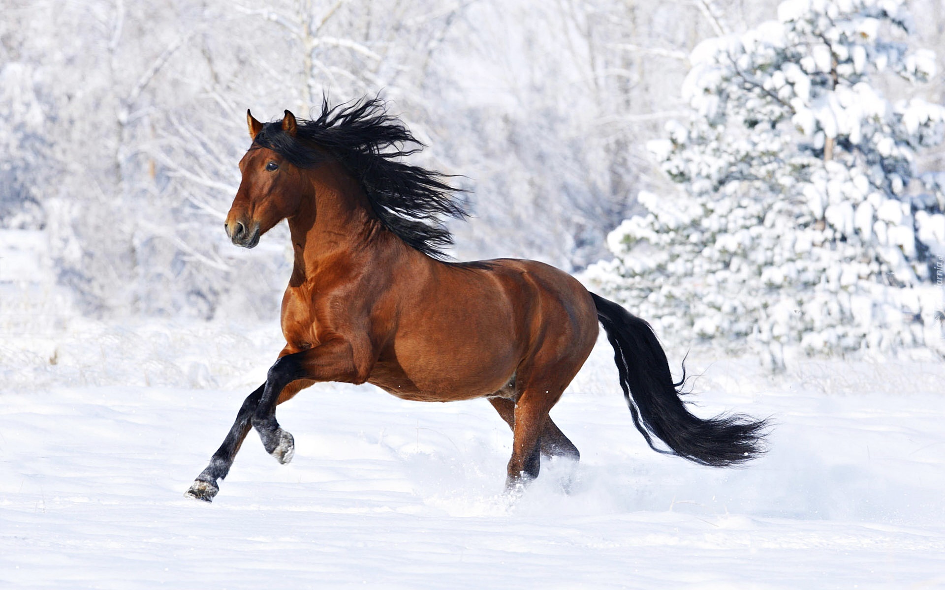 Edytor tapety: Galopujący, Koń, Śnieg