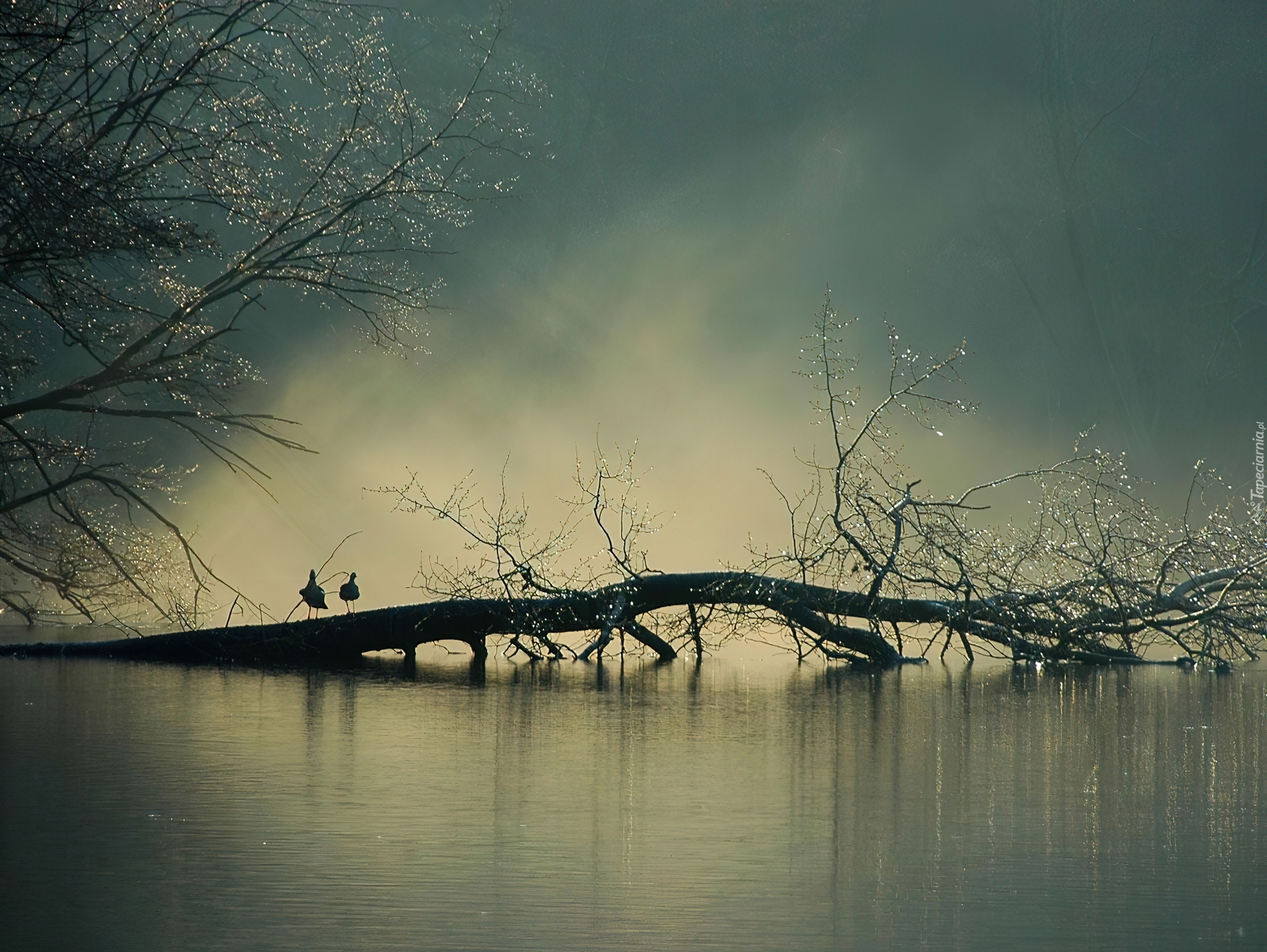 Edytor tapety: Jezioro, Drzewo, Mgła