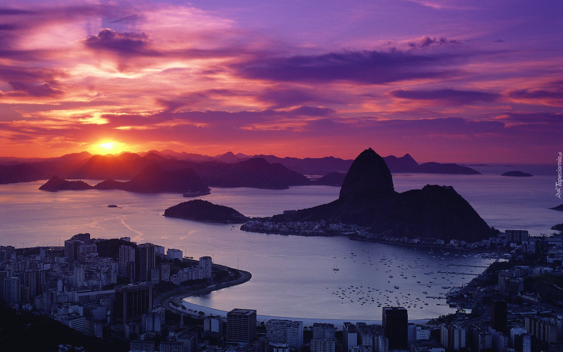 Edytor tapety: Zachód, Słońca, Miasto, Morze, Góry
