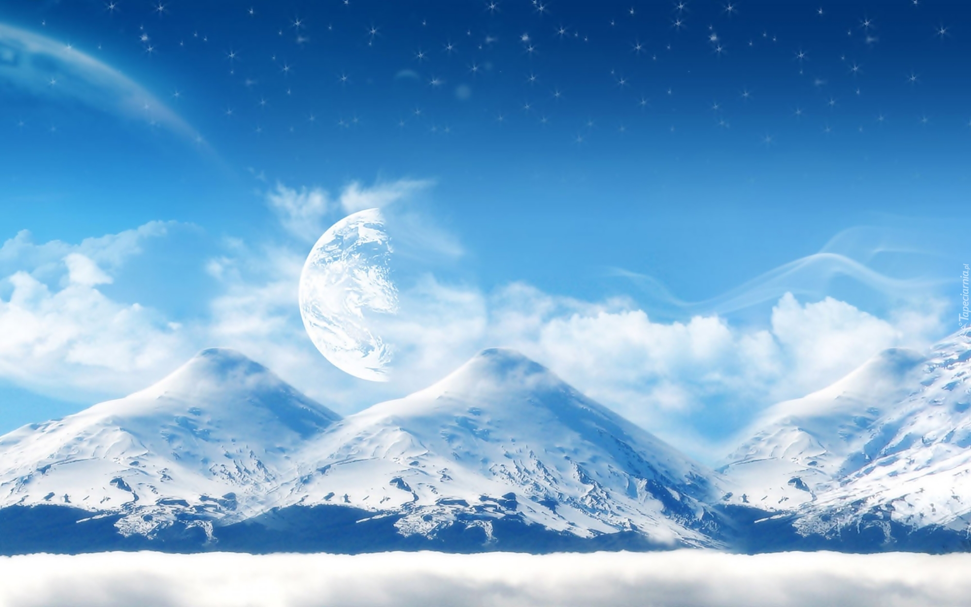 Edytor tapety: Góry, Gwiazdy, Zima