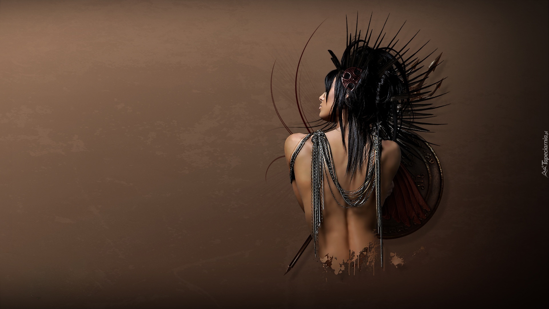 Edytor tapety: Kobieta, Plecy, Naszyjnik, Tarcza