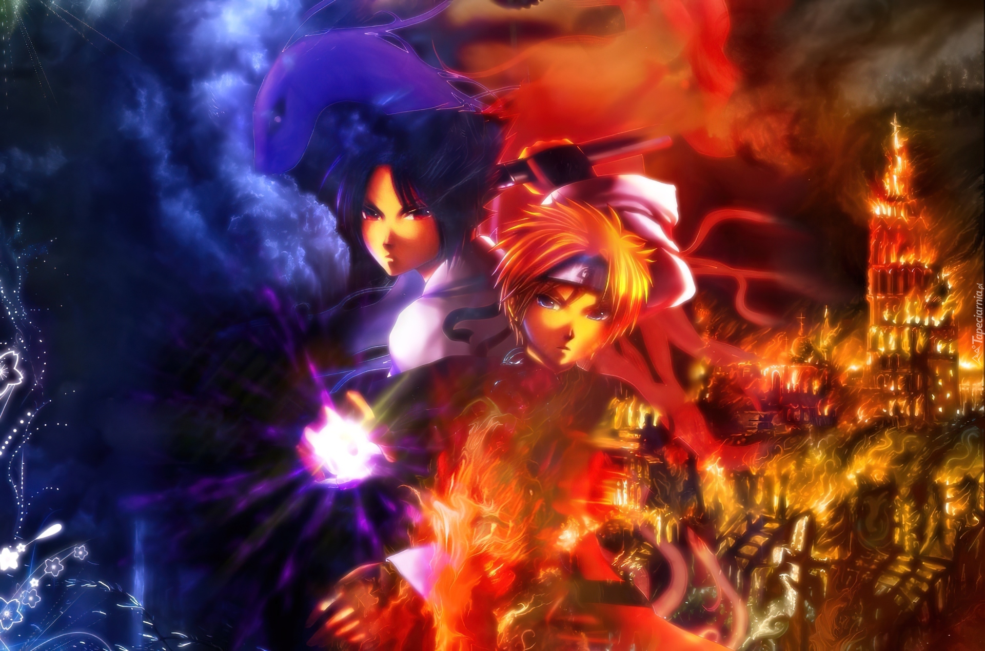 Edytor tapety: Naruto, Miasto, Dym