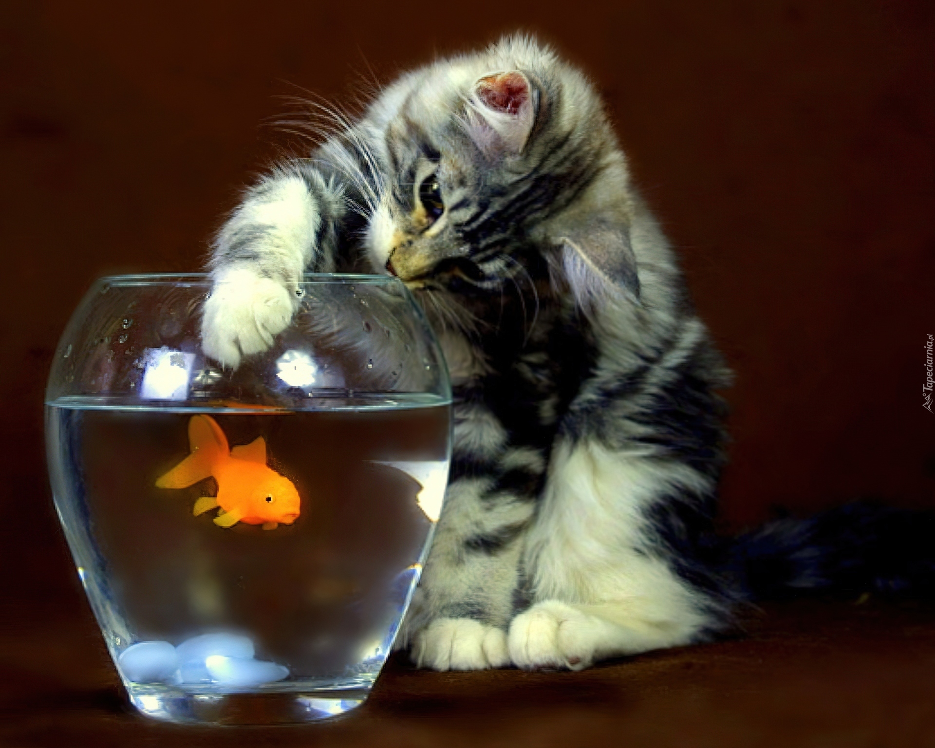 Edytor tapety: Kot, Złota, Rybka