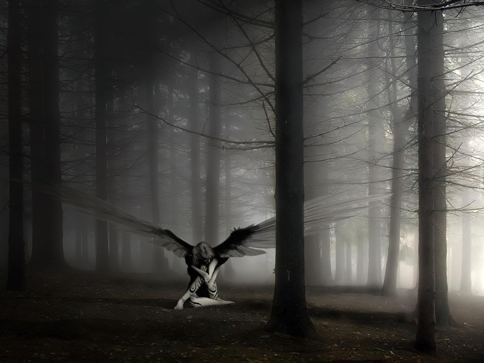 Edytor tapety: Anioł, Las, Mgła