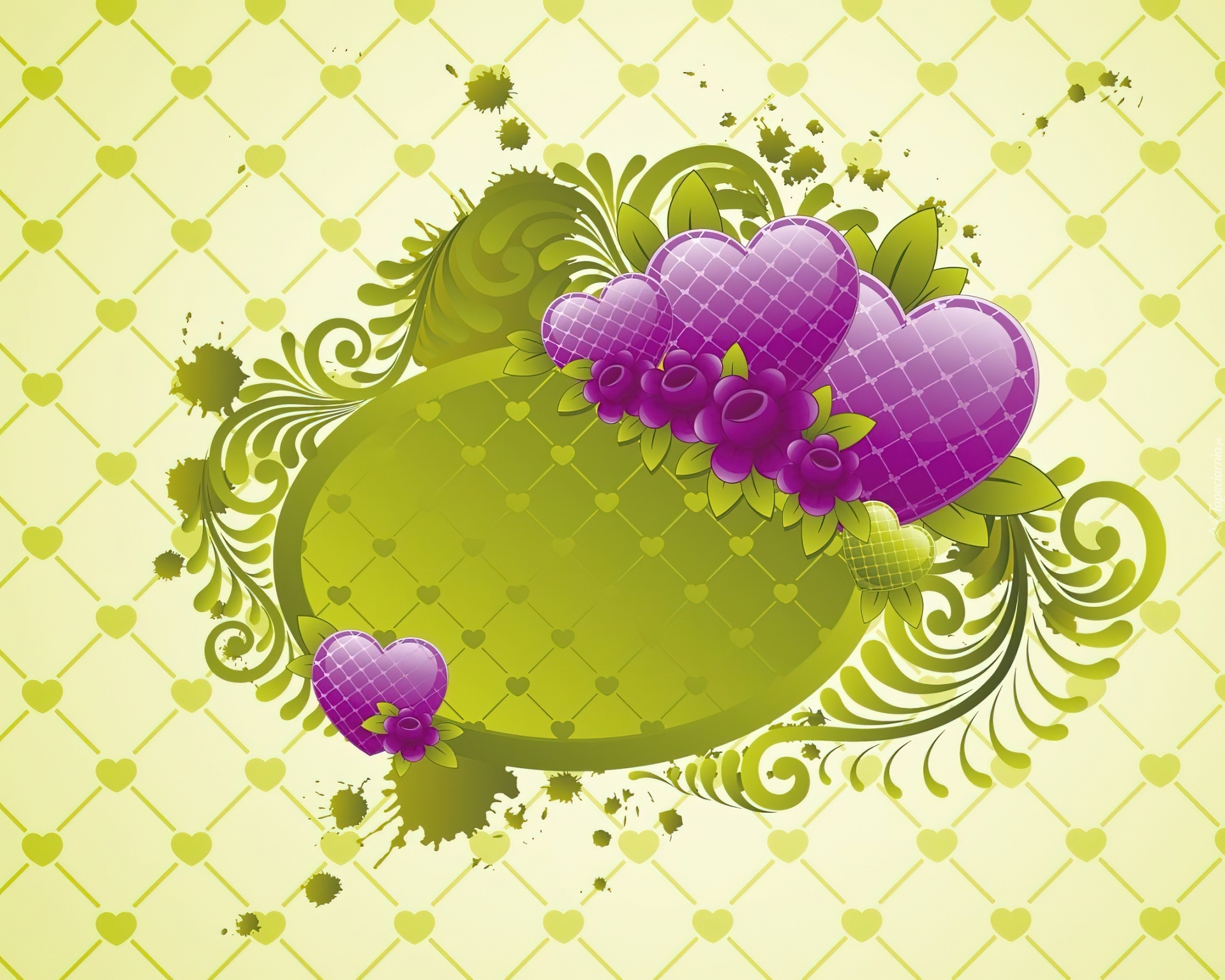 Edytor tapety: Fioletowe, Serduszka, Zielone, Wzorki